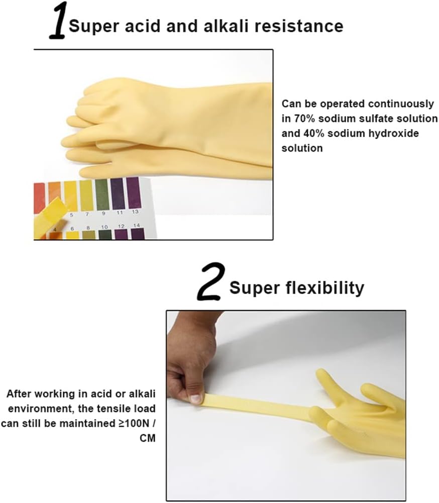 Super flexibility, after working in acid or alkalis environment, it can still maintain tensile load ≥100N / CM.Keep your hands cool and comfortable, optimize comfort, and let you wear it all day.Super anti-skid performance, the palms of the finger is added with diamond grain treatment, which greatly increases the wear resistance of the gloves on the basis of ensuring anti-skid.The use of nature latex and reasonable hand-shaped design allows you to ensure safety without affecting the flexibility of the hand.Widely used in industrial industry, Agriculture, New energy, etc. industries and production.Specification: Material: nature latexColor: yellowsize: sizeLength: 30/40/50 / 60cmPackage Include: 1*Cleaning glovesIf you have any questions about the product, please me, we will you within 24 hours and give you a satisfactory answer.