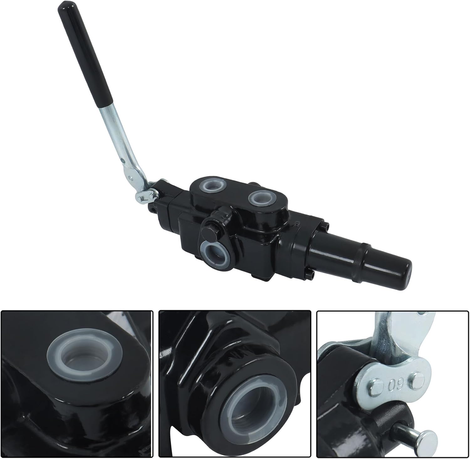 30GPM 3625PSI Hydraulic Control Valve Fit for Log Splitters and Loaders 1 Spool Hydraulic Controller 3/4 Inch NPT Ports 1/2 Inch NPT Work PortsSpecification:Max flow: 30GPMMax operating pressure: 3625PSIInlet / outlet ports on the side: 3/4'' NPTTop ports going to the cylinder: 1/2'' NPTGMP(Gallon per minute)PSl(Pounds per square inch)Features:Manual control allows hydraulic oil to flow from the pressure port to the working port, thereby providing powerHydraulic directional control valve are made of aluminum and heavy-duty iron, which are durable, and can be used for a long timePackaging:1 x Hydraulic directional control valves