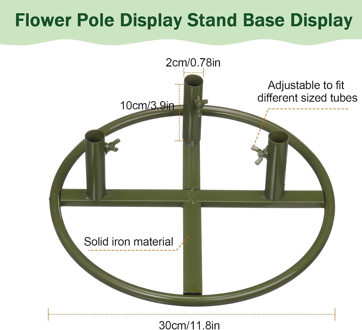 Features: Stable Support for Arrangements: With an adjustable aperture suitable for flower stems with a diameter of less than 2 cm, the display stand base enhances the stability of your floral arrangements. It provides reliable support for both floor standing displays and large arrangements, ensuring your creations remain upright and visually appealing. Thoughtful Gift: This freely shaped flower stem and flower pole display stand base set makes for a practical and thoughtful gift for friends and family who enjoy crafting or decorating. Its combination of functionality and aesthetic appeal ensures it's a delightful addition to creative enthusiast's collection, enhancing their holiday decor and party favors. Specifications: Material: the freely shaped flower stems are made of PVC material, the flower pole display stand base is made of iron Color: green Size: The freely shaped flower stems is about 10 m/32.8 ft long, 0.47 inch/ 12 mm inner diameter, 0.63 inch/ 16 mm outer diameter, the flower pole display stand base is about 11.8 inches/ 30 cm in diameter, 3.94 inches/ 10 cm in height, 0.8 inch/ 2 cm in hole diameter Package includes: 1 X Freely shaped flower stems 1 x Flower pole display stand base Notes: Manual measurement, please allow slight errors on size. The color may exist a slight difference due to different screen displays.