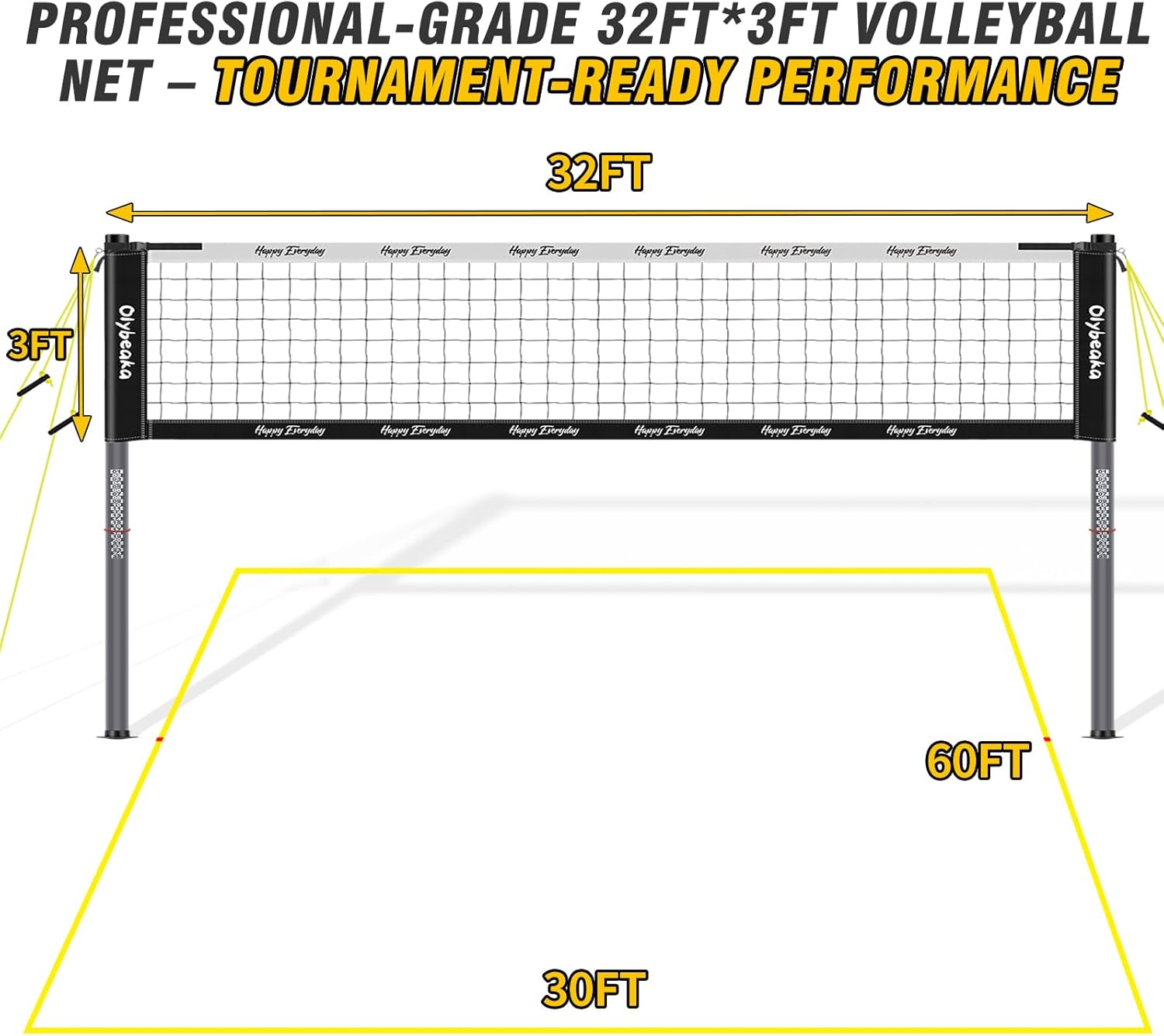 Outdoor Professional Volleyball Net Set for Backyard Beach with Adjustable Heavy Duty Poles, Durable Net, PU Volleyball & Pump, Carry Bag