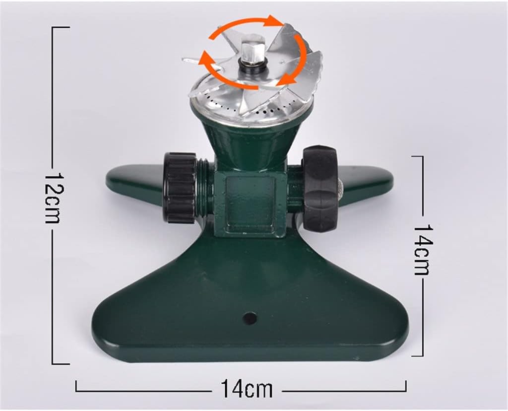 Connector specifications: 3/4- -11. 5NH (6 points)Working method:: hydraulic driveSplash:: Scattering to simulate rainConnection mode: multiple connection modesSpraying range: 0-8 meters (diameter)Adjustable measures: water pressure determines the effectProduct material: zinc alloy + aluminum.The aluminum alloy blade surface is anodized, which is corrosion-resistant and , suitable for long-term outdoor use.The surface of zinc alloy material is electrostatic sprayed. Anti-corrosion and oxidation resistance, not afraid of wind and sun.The water inlet is a standard 6-point inner wire American thread, and the outlet is a 6-point outer wire American thread, which can be used for a variety of joints and supports parallel or series use.Spray 360 degrees to water every inch of vegetation and land.Package Includes:1PCS x Rotating Watering SprinklerNotice:Actual color may be slightly different from the image due to different monitor and light effect.Please allow 1-3cm deviation due to manual measurement.Due to manual measurement, please allow for a difference of 1-3 centimeters. Thank you for your understanding