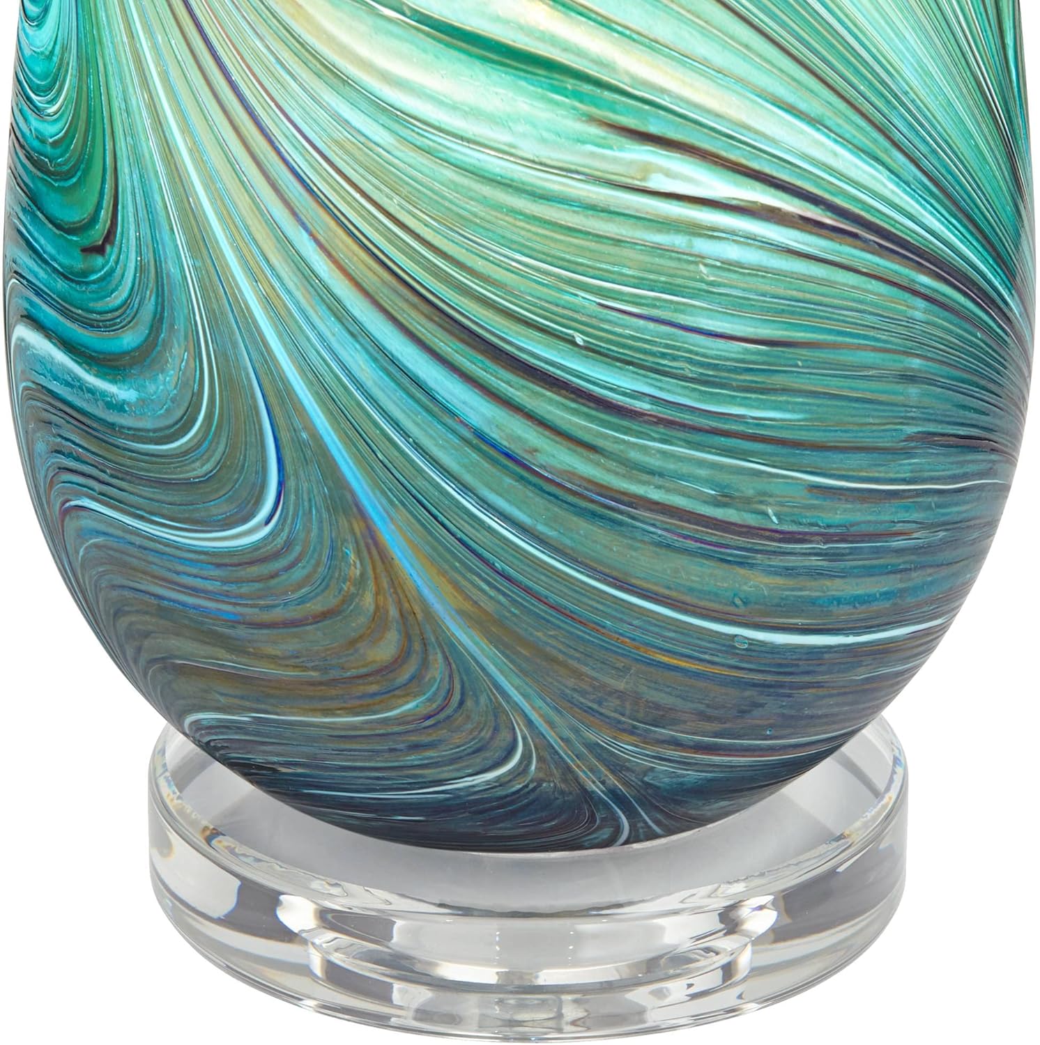 360 Lighting Carmen Modern Accent Table Lamps 12 1/2" High Set of 2 Green Clear Crystal Swirl Art Glass Shade for Bedroom Living Room Nightstand Bedside Night Stand Office Kids Room