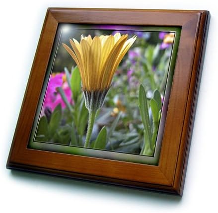 Yellow Gerber Daisy Framed Tile is 8" x 8" with a 6" x 6" high gloss inset ceramic tile, surrounded by a solid wood frame with pre-drilled keyhole for easy wall mounting.