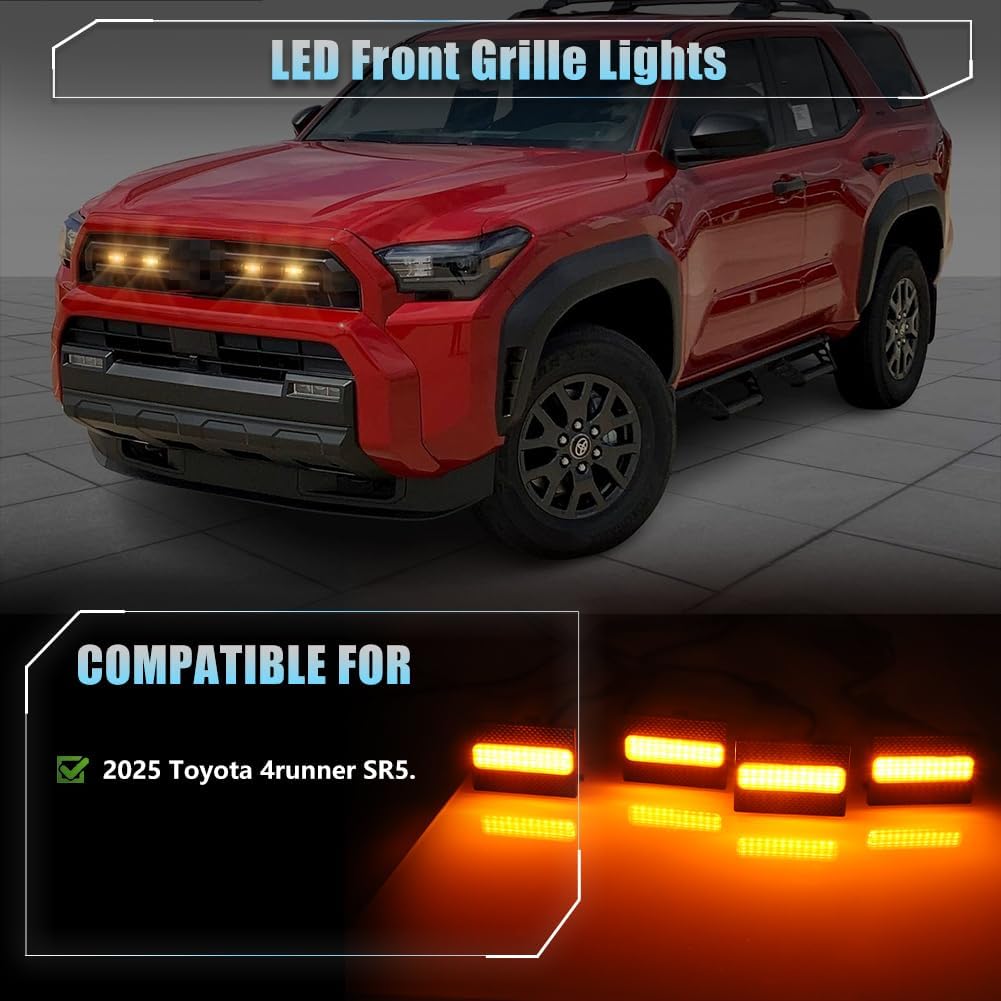 VANKUB 4 PCS Full LED Front Grille Lights for Toyo-ta 4runner 2025 SR5, Amber LED Grille Clearance Light, OEM Grill Led Grilles Light for 4Runner Accessories