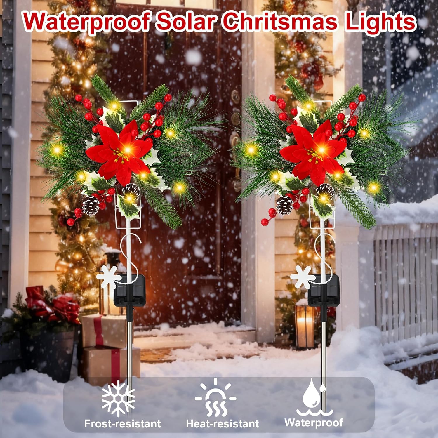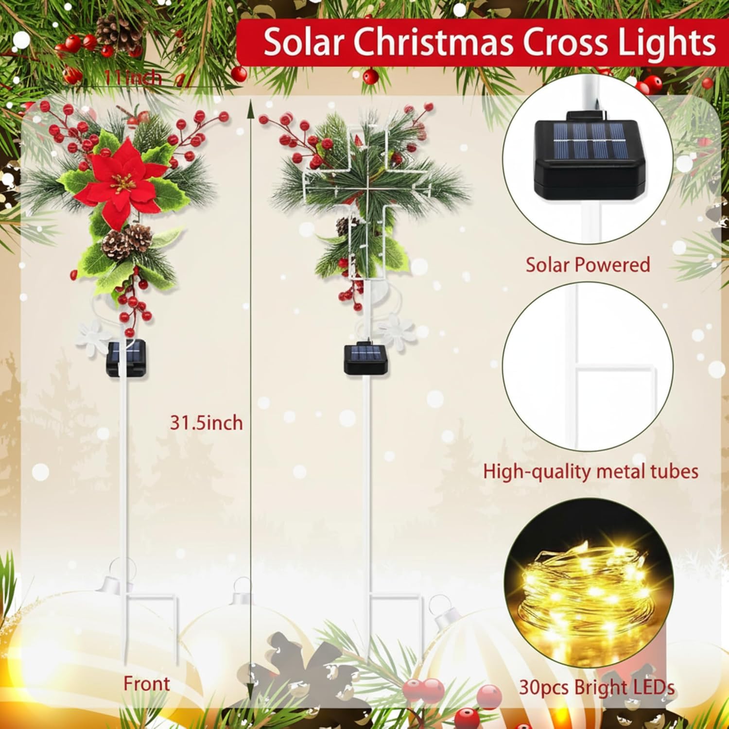 Features: Whether placed on your garden, road, patio, lawn, porch, walkways, front door, or cemetery, our outdoor lighted Christmas crosses are an ideal addition that can turn your place into a warm, festive celebration. The solar powered Xmas pathway lights are a nice Christmas, Thanksgiving, holidays, parties decorations gift for friends or family, adding your garden more Christmas atmosphere. It can also be applied as a Christmas cross cemetery solar memorial lights for grave to better accompany those who have passed away so that they will not be lonely. Specifications: Material: plastic, metal Color: red, green Size: about 33.4 x 10.24 inches/ 84.84 x 26.01 cm Package includes: 4 x Solar Christmas poinsettia stake Notes: Manual measurement, please allow slight errors on size. The color may exist a slight difference due to different screen displays
