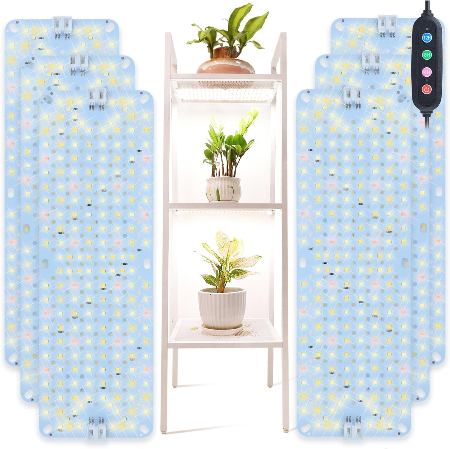 FRGROW 4Pack Flat Grow Lights for Indoor Plants, Seed Starting, VEG, 4/8/12/16/20H Timer, Light and Thin 40W Grow Lights for Under Cabinet Plant/Shelves, Two Connection Modes, Quick Installation