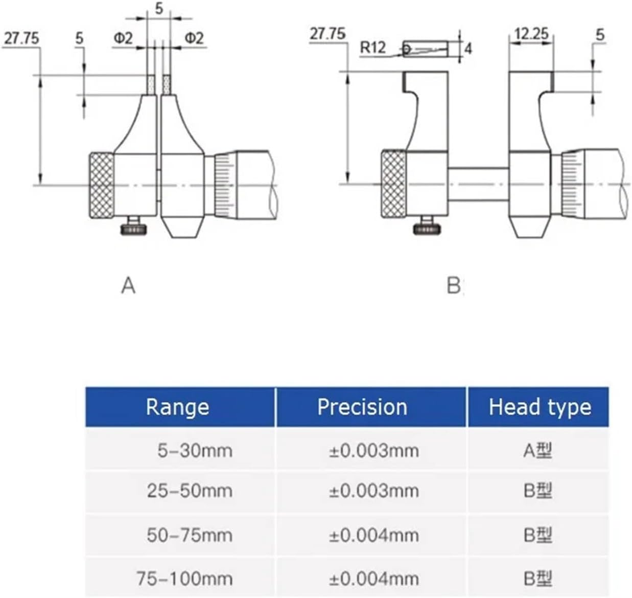 Micrometer Heads300202875-30MM with ring3002028825-50MM with ring3002028950-75MM without ring3002029075-100MM without ring30020291100-125MM without ring30020292125-150MM without ring30020293150-175MM without ring30020294175-200MM without ring