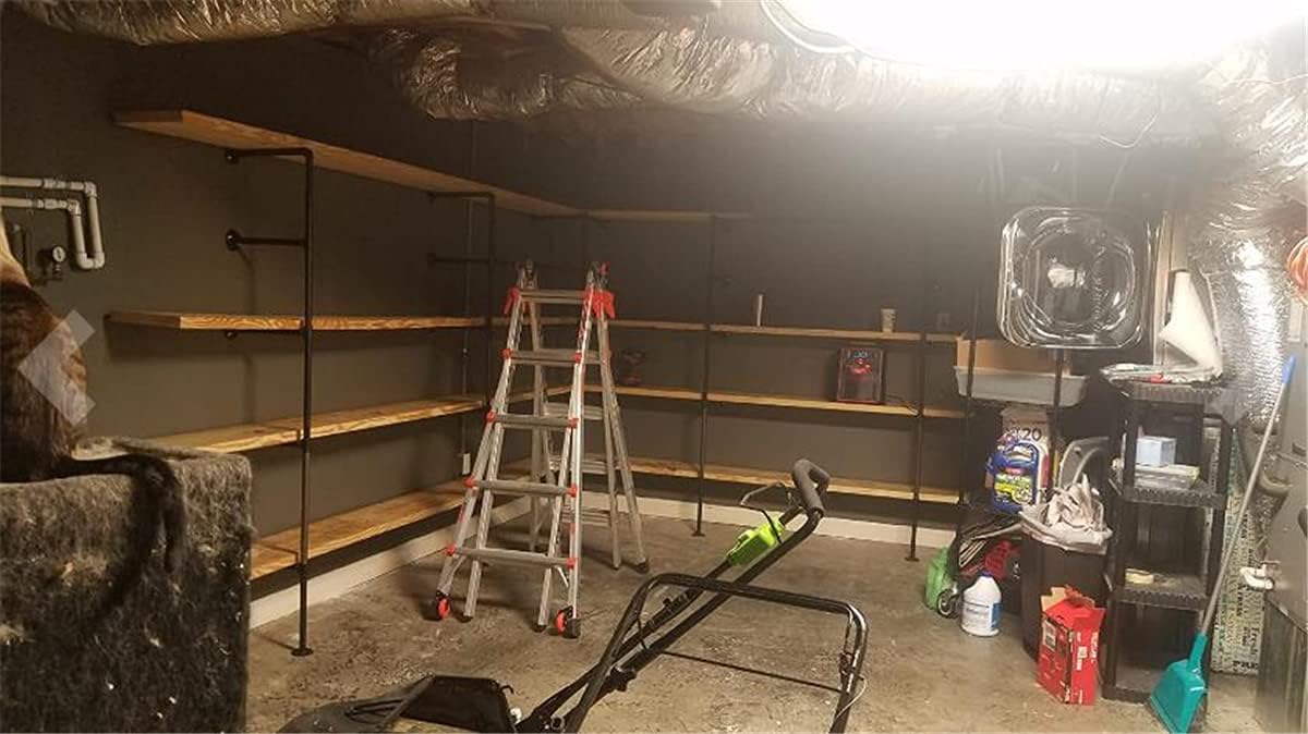 LoftPhoenix Rustic Industrial DIY 5 tier iron pipe shelf, Easy "do it yourself" project for your home or office. You can use it “DIY” your's bookshelf, kitchen shelf, bathroom shelf, flowers shelf, and so,add extra space. Perfect for your home and is your best choice. Industrial shelf hardware is a great way to spice up any living space in your home,it create a sense of farmhouse and industrial to your home. Try to make your own DIY decor and better save your space. Product Specification: -Color:Black -Material:Made of malleable iron steel,very durable -Surface treatment:painted black matt -Bearing:Shelf brackets can hold 50 pounds if properly fastened into wood wall framing -Size: 70" high, 5 Tier, about 11" between each tier (excluding tees, elbows); 12"depth (without screw position); 3/4" pipe diameter; Maximum width of the board can be:12" The length of board is less than 60" Note: Plank is not included,you need to buy it from local market. How to use? A lot easier to hang than I thought it would be (since you have to attach shelves first);Very easy to put together, assembled the entire unit; --1.When assembling, compare the parts to the parts drawing in the installation structions; --2.follow the installation instructions step by step. --3.Then the parts are rotated clockwise to make the shelving firm. Package Included: (12)3/4 inch flanges (8)3/4 inch X 12”short pipes (10)3/4 inch X 13”long pipes (2)3/4 inch X 15”longest pipes (2)3/4 inch elbows (8)3/4 inch tees (48)screws (48)wall anchors (10)Pipe straps (20)screws for pipe straps Note: --When dirty, use a soft damp cloth to clean the rail rack clothes. --All dimensions are manually measured with a possible deviation of 1-3cm.