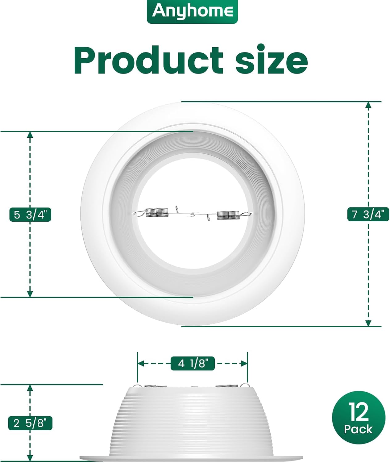 | Included Components | Recessed lighting 6 inch trim x 12 Pack |
