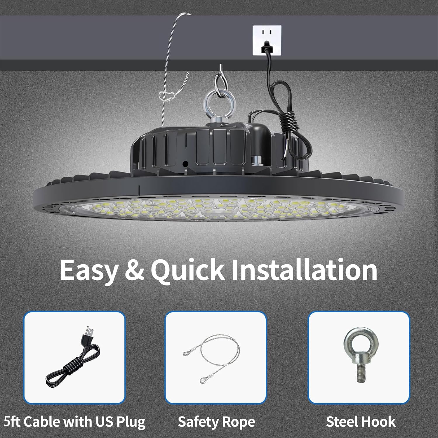 | Included Components | 5ft Cable with US Plug, Safety Rope, Steel Hook, LED High Bay Light |