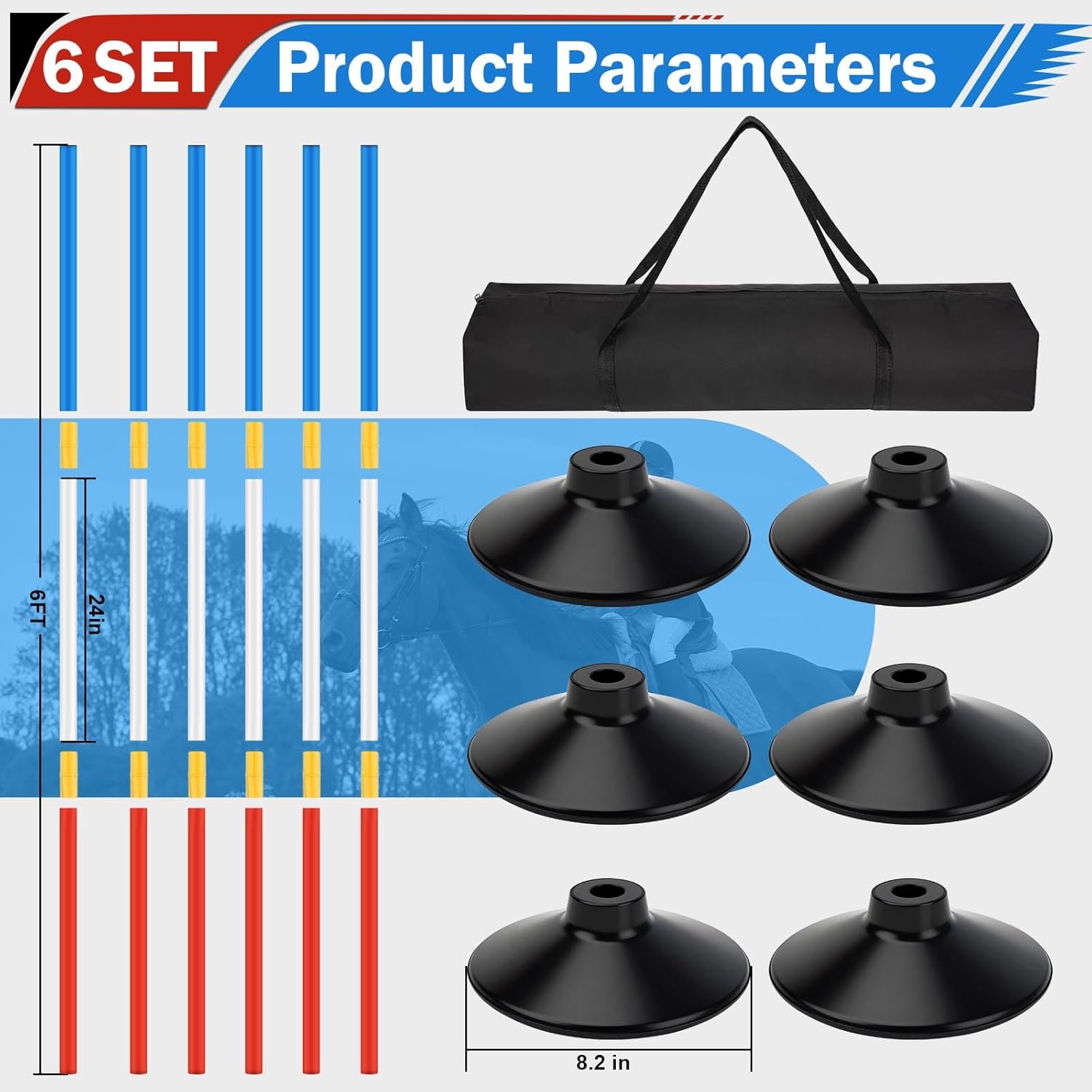 | Included Components | 6 Pcs 6FT Pole Bending Poles for Horses |