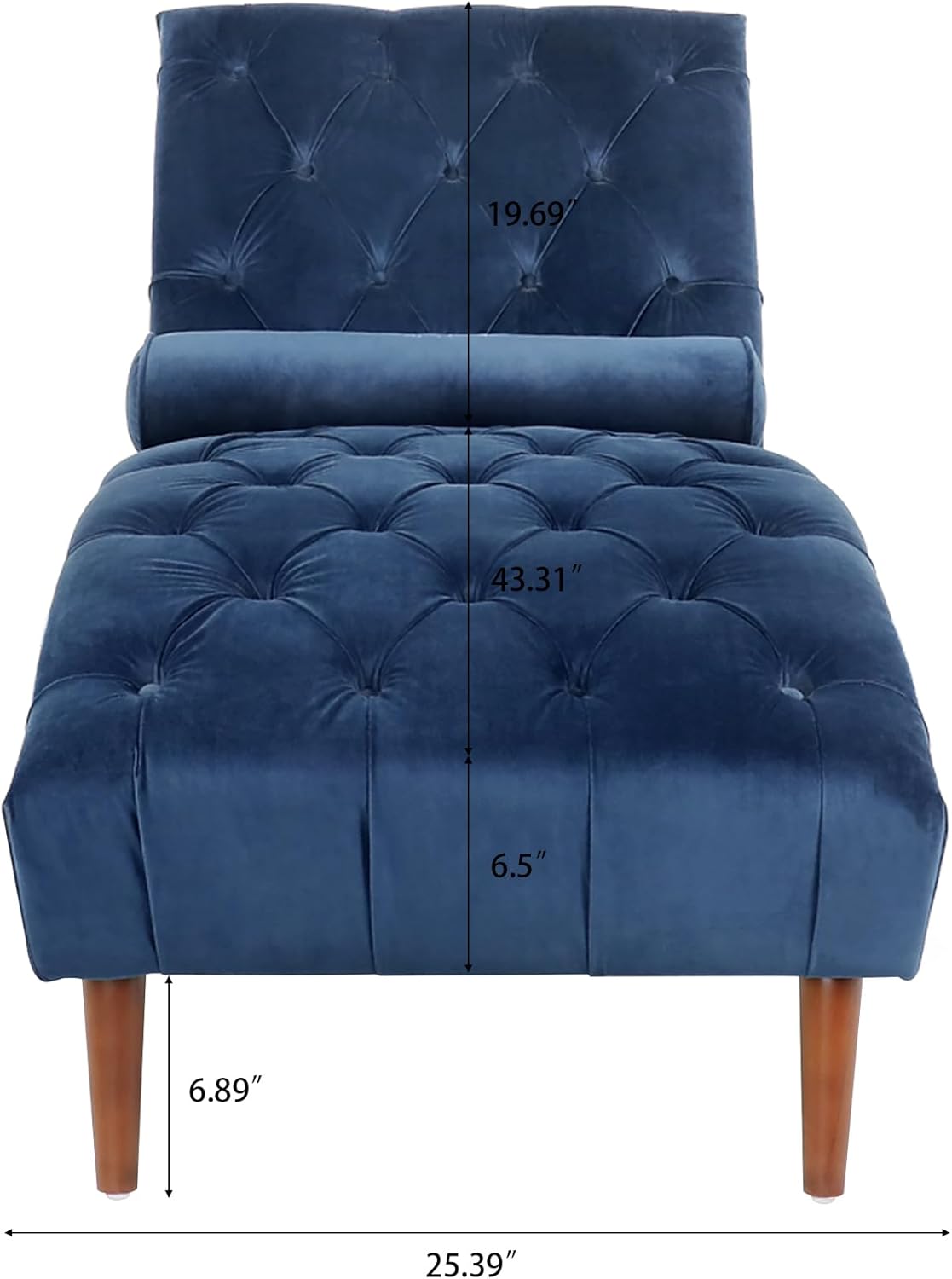 60.24" Chaise Lounge Tufted Armless Velvet Indoor Upholstered Chaise Lounge, Lounge Chair for Living Room Bedroom Legs Solid Wood