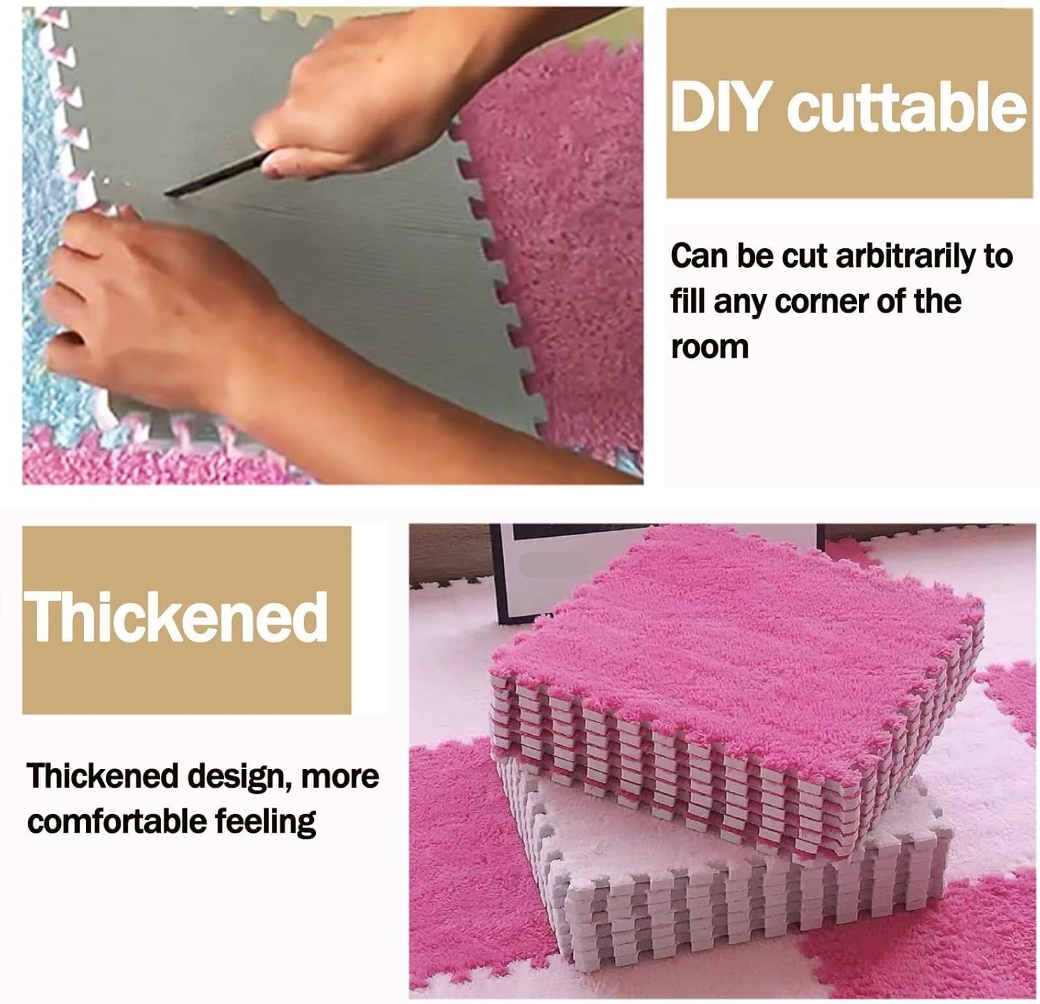 Square Soft Fluffy Tiles with Border Play Mat Protective Floor for Children Kids Room Home Parlor BedroomApplicable places: living room, lobby, bedroom, study, balcony, bay window, tatami, cloakroom, etc.Product parametersProduct name: plush puzzle carpetProduct material: comfortable cotton velvet surfaceProduct thickness: 1cmProduct features: washable, free cutting, free splicingUsage space: playroom, yoga studio, dance class, bedroom, living room, etc.12x plush patchwork carpet