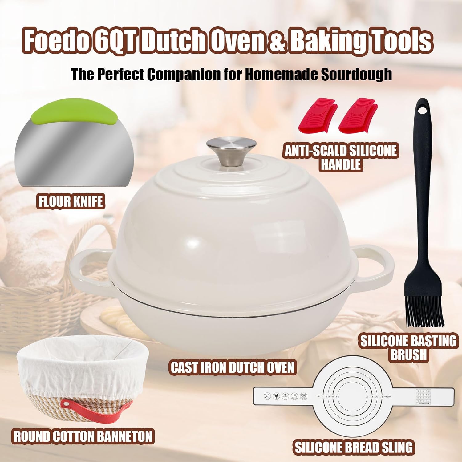 | Included Components | Dutch Oven, brush, proofing baskets |