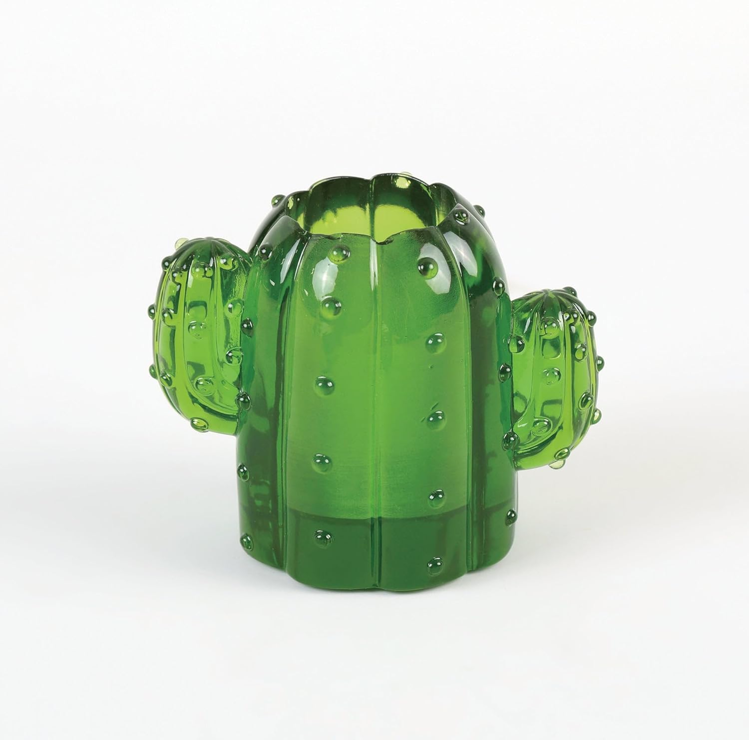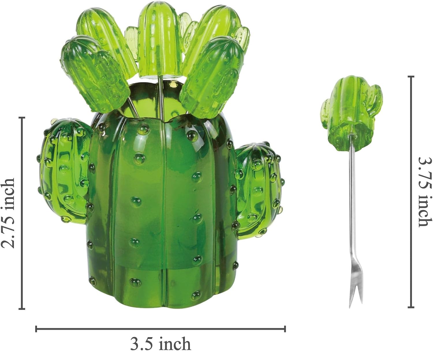 Add a pop of desert charm to your next gathering with this cactus-themed cocktail pick set. Whether you're hosting a summer fiesta, southwestern-inspired brunch, or simply looking for a unique touch on your grazing table, this set combines style and function in a compact format. It includes six stainless steel appetizer picks topped with vibrant translucent green resin cactus handles, each designed to resemble a miniature saguaro cactus for a fun and eye-catching look. The included cactus holder completes the theme with bold sculptural arms and a high-gloss green finish, making it a decorative focal point on any table. Measuring 3.5 inches in length by 2.25 inches wide and 2.75 inches high, the holder offers both display appeal and convenient storage for the six included picks. Each pick is 3.75 inches long, featuring a two-pronged stainless steel tip that’s ideal for securely grabbing cheese, fruit, appetizers, and other bite-sized treats. Crafted from polyresin and stainless steel, this set is designed to withstand regular use while maintaining its visual appeal. The playful design makes it suitable for everyday use or special occasions like themed dinner parties, taco nights, or outdoor entertaining. It also makes a creative gift option for hosts, entertainers, or anyone who loves decorative kitchen tools with a hint of fun. With its bold colors, desert style, and practical function, this cactus pick set adds a lively twist to any serving spread.