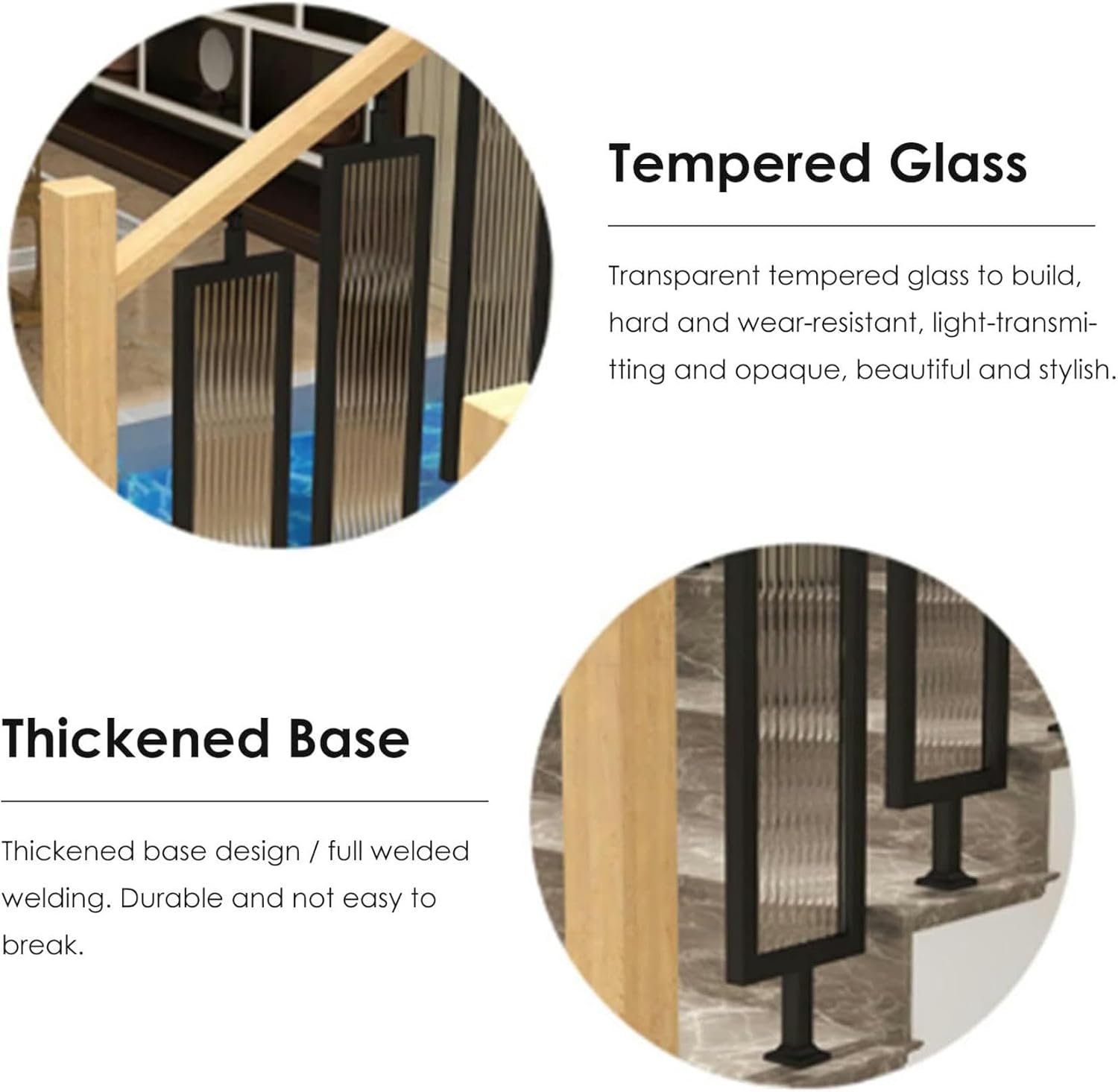 Balusters SpindlesBaluster spindles Can be widely used in various places such as home, Courtyard, Villa, Garden, Deck, attic, house, porch, balcony, and hotel.● Specification:- Material: Material:Metal + Tempered glass- Height: 85cm/33.5inch- Width: 20cm/7.9inch- Base: 6.8x6.8cm/2.7x2.7inch● Features:- With tiltable top bracket (270°) & sturdy base.- Perfect design is aesthetically pleg and light in weight.- Made of metal iron, the surface is painted for easy cleaning.- Can be widely used with Balusters in various places such as home, Courtyard, Villa, Garden, Deck, attic, house, porch, farmhouse, Entryway, balcony, and hotel.● Package Include:- 1 × Balusters Spindles● Tips: - Feel free to contact us if you have any issues with your order. - Necessary measurement: Please measure the total length at the location to be installed to calculate the number of roots to be installed.- There may be an error of 1-3 cm due to manual measurement.- There may be chromatic aberration due to the difference between the recording lamp and the display. Please refer to the actual product.