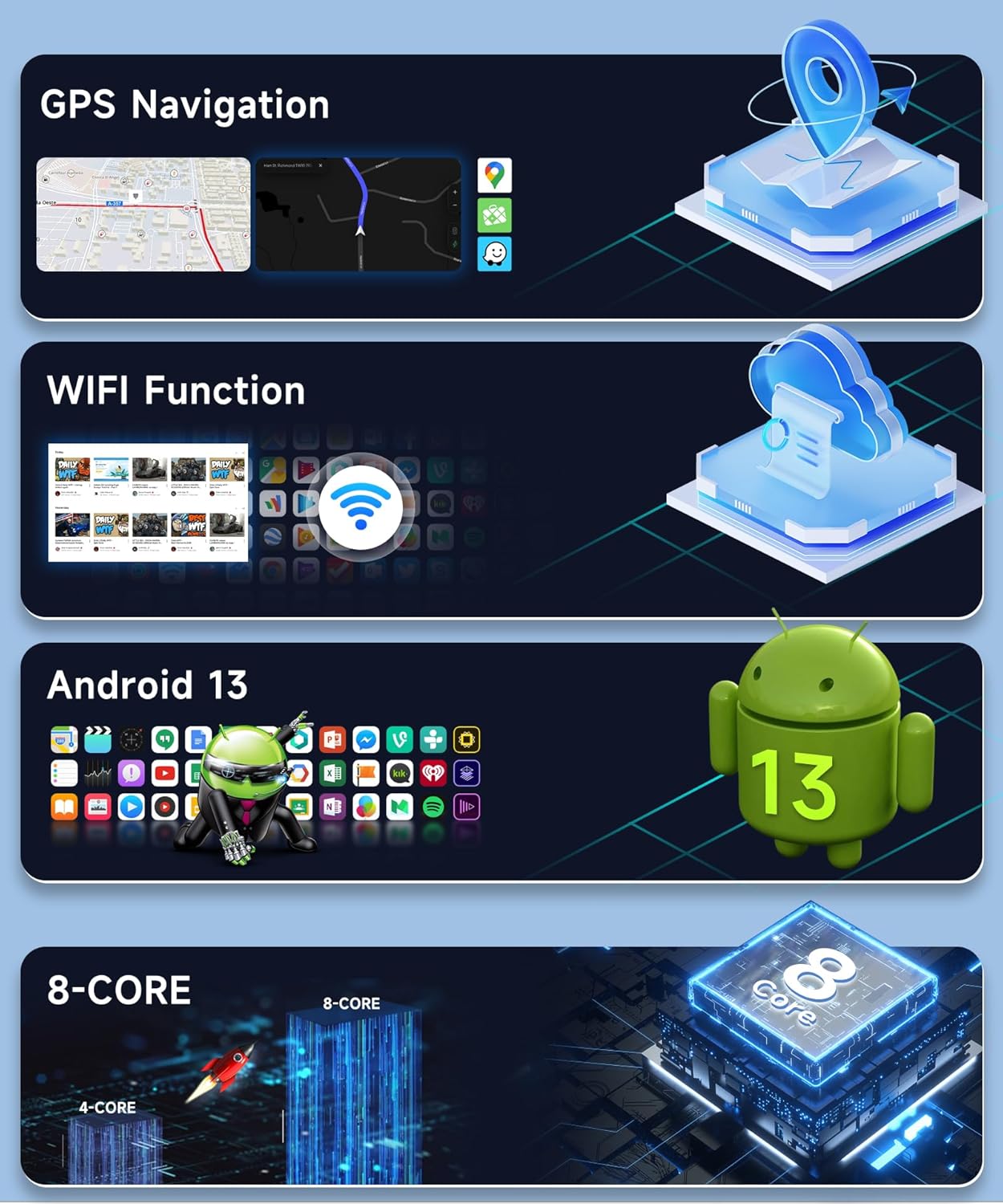 | Additional Features | Fit models with large navigation screen & J-B-L sound system, IPS 1280*720P Screen, Wireless CarPlay Android Auto |