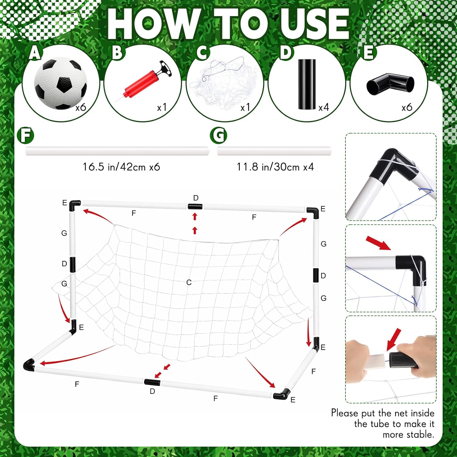 | Additional Features | Soccer Field Design, Portable Soccer Goal, Inflatable Soccer Balls, Easy Assembly, Convenient Air Pump |