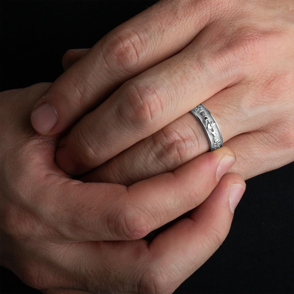 Celebrate eternal love with our Unisex Irish Celtic Claddagh Heart Trinity Love Knot Wedding Band Ring. Meticulously crafted, this ring embodies the rich symbolism of Irish culture, making it an exquisite choice for weddings or meaningful occasions. The Claddagh design, with its heart, hands, and crown, symbolizes love, friendship, and loyalty – an ideal representation for a lifelong commitment. The intricate Trinity Love Knot further adds depth to the symbolism, embodying the interconnectedness of life's journey. This unisex ring is not only a symbol of enduring love but also a versatile accessory suitable for daily wear. The timeless design seamlessly blends tradition and modernity, making it a perfect addition to any wardrobe. The details enhance the overall elegance, adding a touch of sophistication to the piece. Crafted from high-quality materials, the ring ensures durability and longevity, standing the test of time just like the love it represents. Whether worn as a wedding band or a fashion statement, this Claddagh Trinity Love Knot ring is a unique and meaningful accessory that transcends trends. Gift this extraordinary piece to a loved one or wear it as a personal emblem of your journey. Embrace the intertwining themes of love, friendship, and loyalty with our Irish Celtic Claddagh Heart Trinity Love Knot Wedding Band Ring – a timeless expression of commitment and connection.