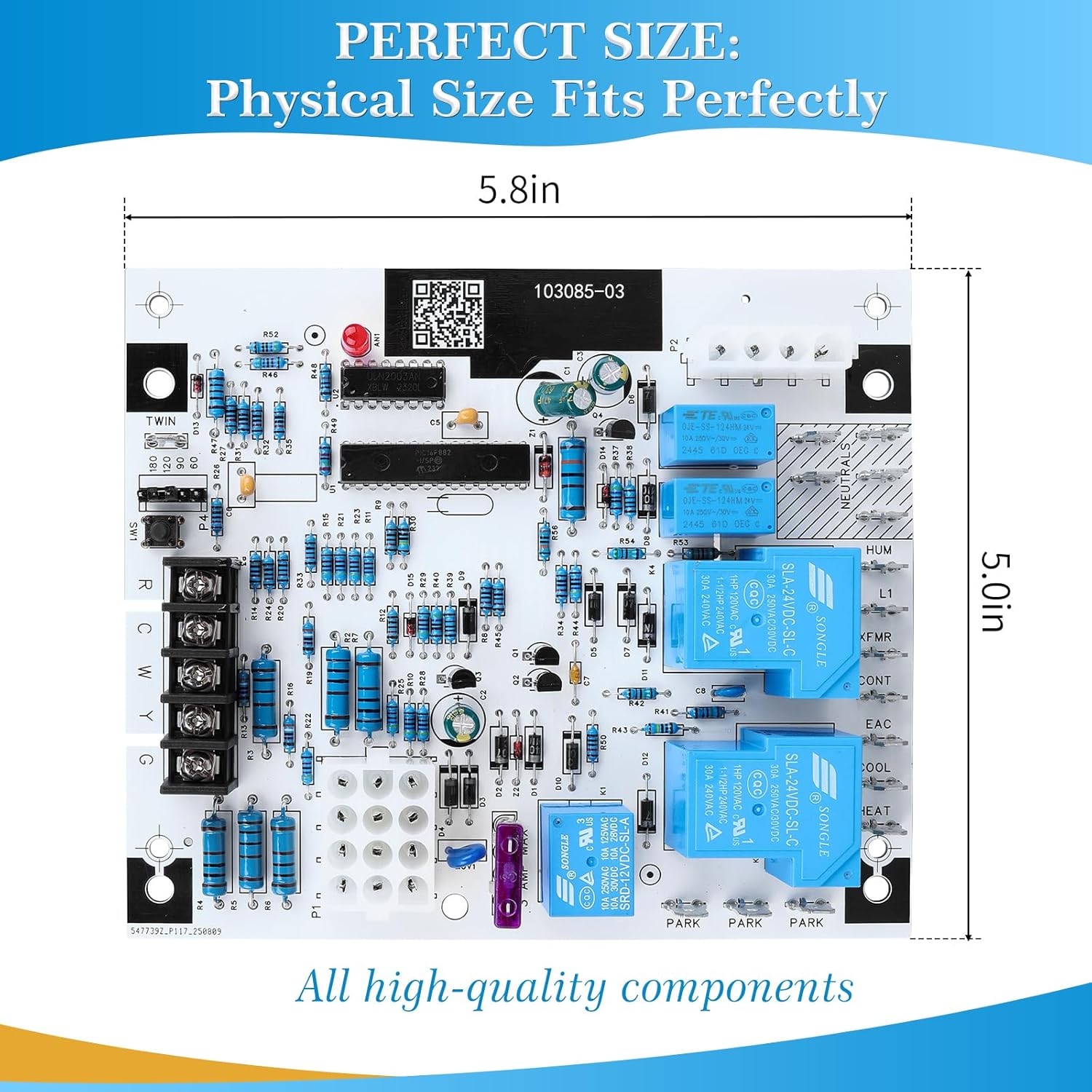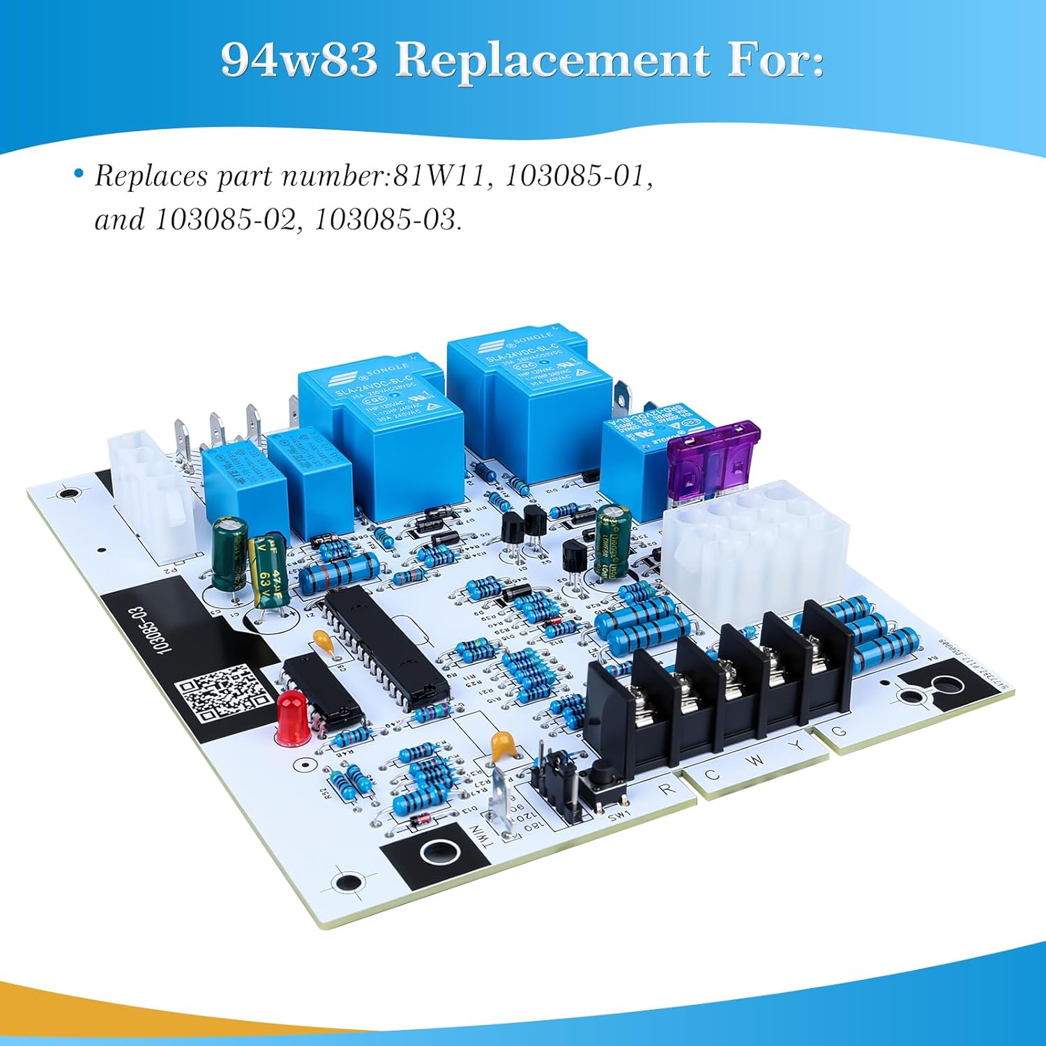 Replaces part number: 81W11, 103085-01, and 103085-02, 103085-03. Function: Used as a replacement accessory for single-stage furnaces. This control board manages key furnace operations, including ignition sequence, flame sensing, and blower control, ensuring stable system performance. Advantages: Easy and fast installation. Please disconnect the power supply before repairing. Before disassembling and replacing old parts, you can take photos to ensure that the installation and replacement are done by connecting the wires to the correct terminals. Package included: 1* Furnace Control Board. This product does not contain instructions. Working circuit voltage: It operates within the voltage range of 18-30VAC.