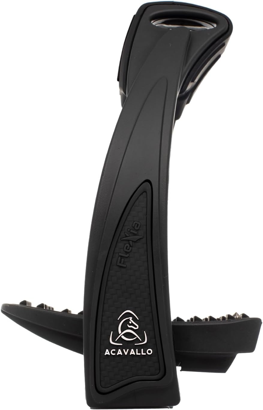 The Flexia stirrups were developed to meet the needs of the rider in the saddle. The tread has an elliptical surface structure, which offers ergonomic support for the sole of the foot, while ensuring high grip with the boot. Inside the tread there is the "Flex System": a precision mechanism studied in over 5 years of research and extensively tested in the field to fine-tune it. The mechanism is made of the highest quality materials and allows the tread to rotate on the horizontal axis, flexing backwards or forwards to constantly follow the position of the rider's foot. Together with the construction of the arches and the perfect balance of the various components, the flexible tread constantly anticipates and follows the position of the foot, immediately giving a feeling never experienced before during sporting activity. Thanks to the resistance regulation of the "Flex System", the energy generated by the horse's movements is released proportionally to its gaits, significantly lightening the rider's joint effort. The effect is immediate relief of the knees and pelvis, along with smoother use of the ankle. During the most demanding show jumping sessions, the rear Flex is a great ally in taking off and landing from the jump, while the front Flex compensates for any forward shifts in the rider's balance. Sold in pairs.
