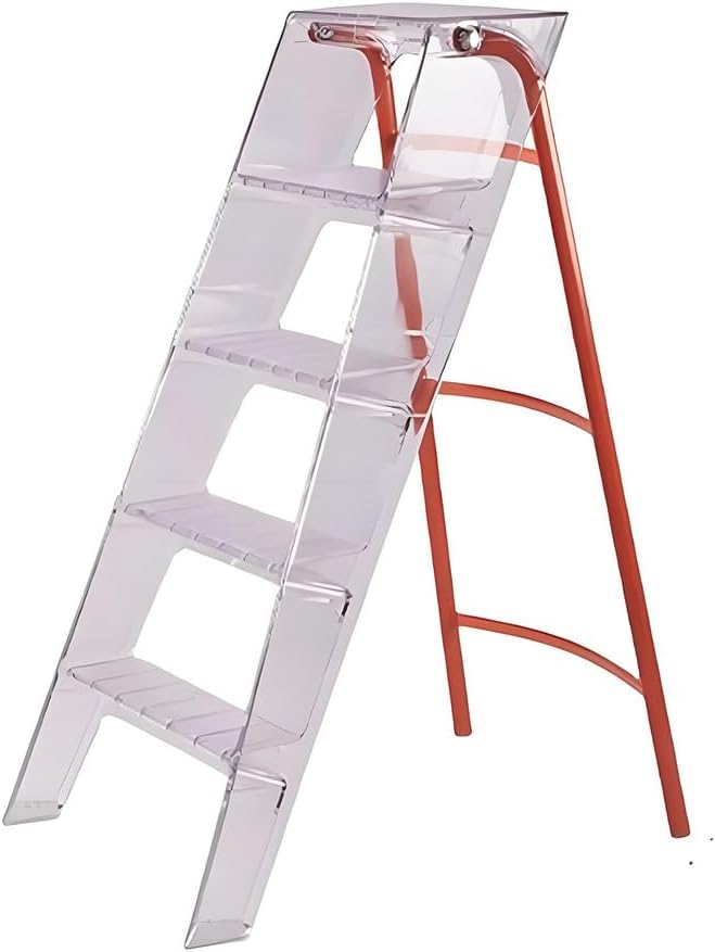 Folding stool/3-story and 5-story climbing ladderAcrylic transparent materialA good ladder has both sturdy and beauty, simple design, crystal clear, stable.Widened non-slip pedalThe integral forming pedal increases the friction and allows you to climb up with more peace of mind;Quick folding storageThe structure is flexible and easy to fold, and the volume is small and does not take up space. It is a good choice whether it is placed next to the TV cabinet or in the corner of the wall.Fine metal feetTriangular mechanics principle, metal frame, solid legs, bring you a stable experienceName: Folding Step StoolMaterial: Acrylic, Metal frameStyle: 3 Step Ladder, 5 Step Ladder3 Step Ladder Size: 61x44x63cm (24x17.3x24.8 inch)5 Step Ladder Size: 74x51x100cm (29.1x20x39.4 inch)Color:Transparent, transparent A, transparent B, transparent C, transparent D, gray, brown, blue, orange, black, green, whiteweight: 4.8kg,6.9kgApplication scenarios: home, office, library, kitchen, balcony, garden, etc.Included:1 x folding footstoolTips:1. Due to manual measurement, there may be slight deviations in the size of the Step Ladder2. The color of the step ladder shows a little deviation under different lights and displays, but it will not be very different