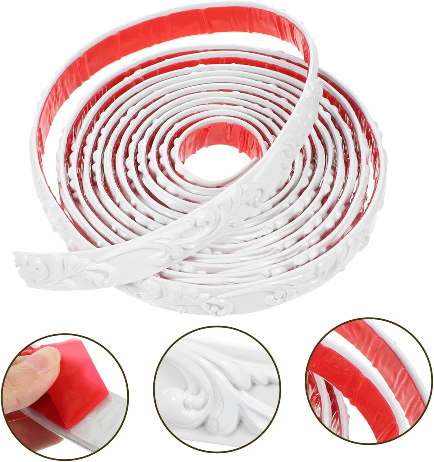 Package Include 1 x Molding Trim Features - Color: White edge banding trim - Material:PVC peel and stick trim for cabinet edge - Size: About 500.00X2.50X0.50cm/196.50X0.98X0.20in self-adhesive trim caulk strip - It can be pasted on smooth surface, multipurpose and useful, flexible and useful, enough length peel and stick trim caulk strip. - Simply measure the desired length, easy to cut at will, better satisfy your requirements self-adhesive stick trim. - The peel and stick trim caulk strip can be used for wall edge, cabinet edge, tile edge and wall corner corner molding trim. - Made of PVC which features with stability and durability, very hard and smooth for durable usage cabinet door banding. - Self-adhesive design, simple to use, easy to operate, bring much convenience to your daily trim.Goods Descriptionadhesive molding trim The flexible trim caulk strip is made of materials, reliable and durable, withstand longer service time.peel and stick trim for wall edge Flexible and useful, self-adhesive design, simple and easy to use, can be used for tile edge, wall corner, wall edge, cabinet edge