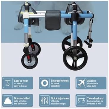 Introducing our Dog Wheelchair, an ideal mobility solution tailored for pets requiring extra support. Made from robust aluminum, this lightweight wheelchair provides excellent leg support and stability, helping your furry friend engage in daily activities with renewed confidence. Our wheelchair is designed for convenience, featuring easy assembly and adjustable components to accommodate various breeds, from small to large dogs and even cats. Whether your pet is recovering from an injury, facing mobility challenges, or simply needs a boost, this wheelchair delivers a comfortable and secure fit, enhancing their overall quality of life. Its portable design makes it perfect for travel, allowing you to take your pet on adventures without any hassle. The compact structure ensures easy storage when not in use, providing flexibility for your journeys. Additionally, the materials used are simple to clean, making upkeep effortless for busy pet owners. Before making your purchase, we encourage you to measure your pet according to our size chart to ensure the best fit. Keep in mind that slight color variations may occur due to lighting conditions and individual perception, and a small measurement error of 1-2 cm is generally acceptable. Empower your pet to explore the world with our Dog Wheelchair—where comfort meets functionality, allowing them to regain their mobility and happiness. Your pet deserves the best, and with our wheelchair, they can enjoy life to the fullest.