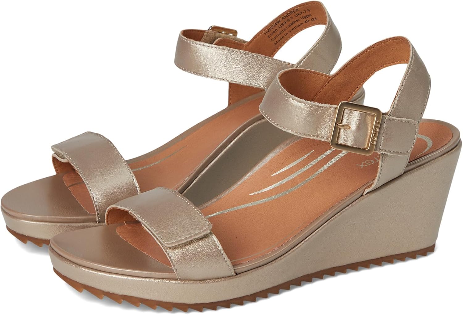 Step into summer style with the Andrea Wedge Sandal. Designed with adjustable quarter straps featuring hook & loop closures, these sandals guarantee a snug and customized fit. The leather-wrapped wedge and footbed offer a blend of elegance, durability, and comfort. Featuring Aetrex Arch Support, the Andrea seamlessly combines practicality and fashion, perfect for any sunny-day outings.