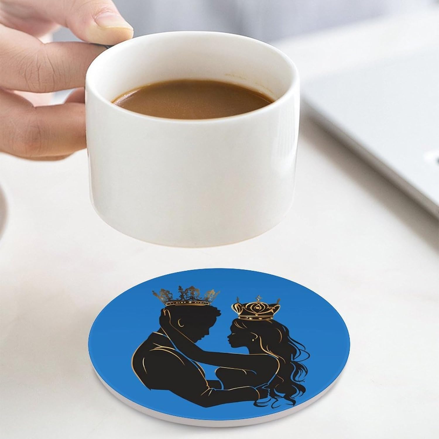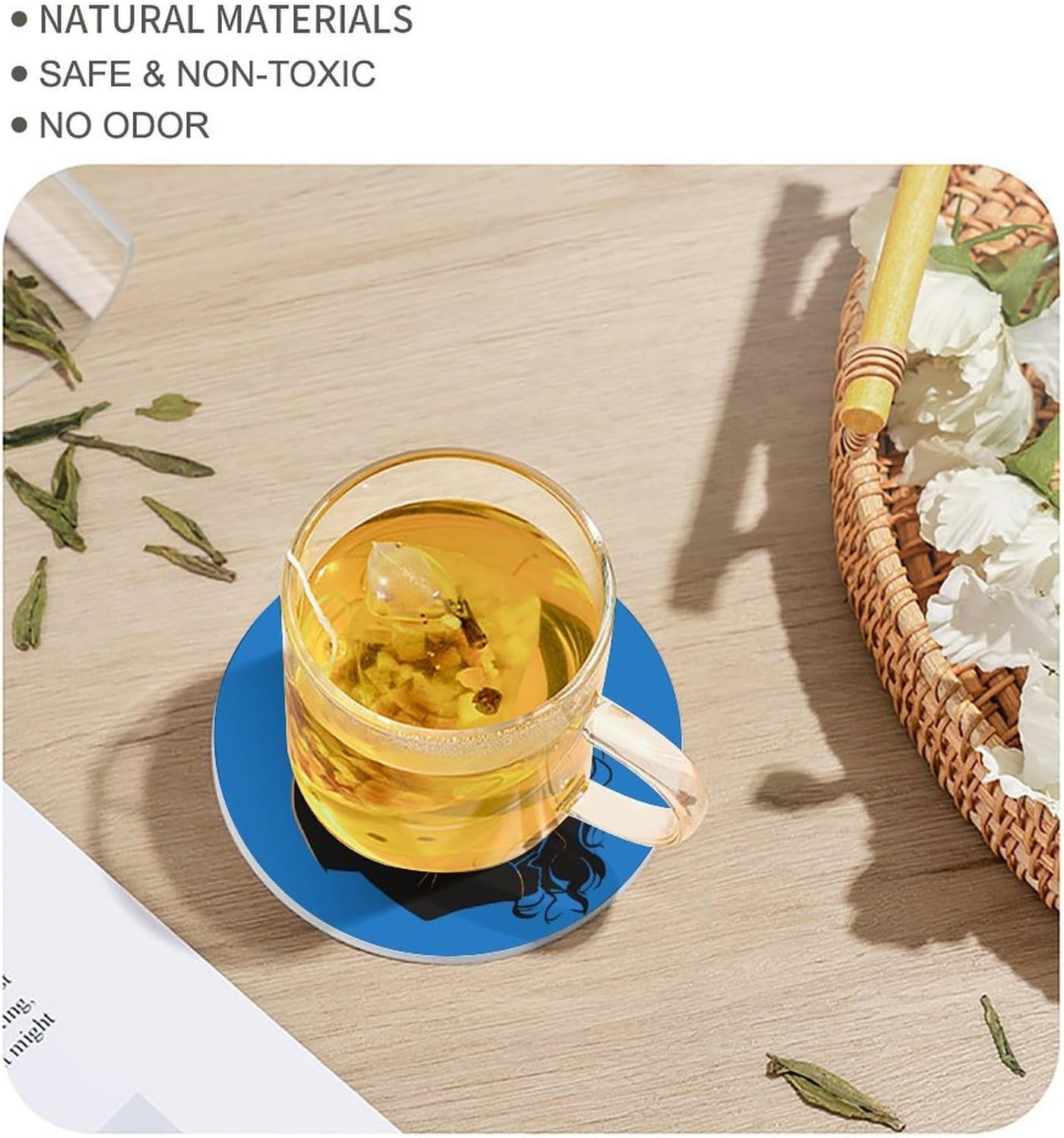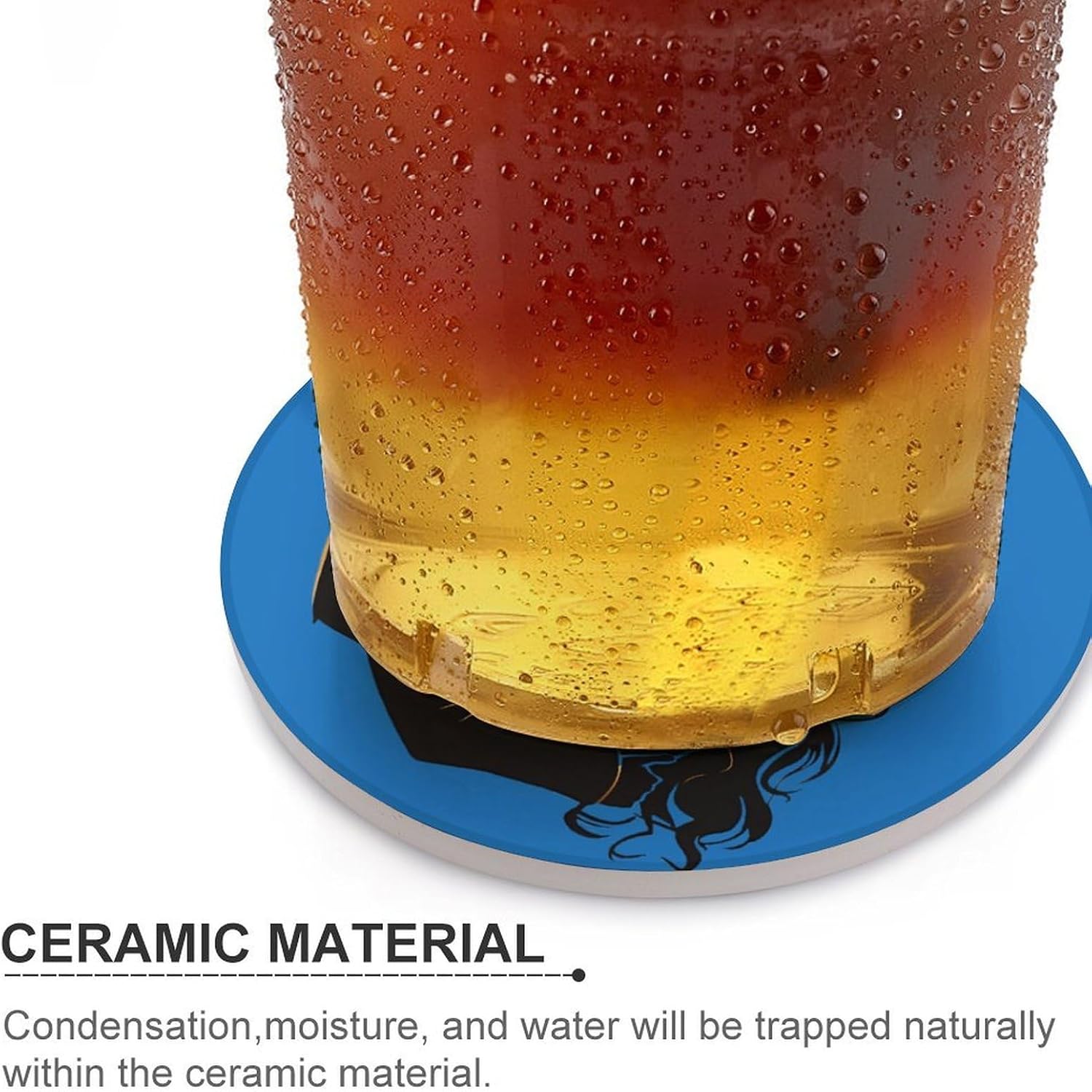 Cute Printed Round Drinks Absorbent Ceramic Coaster with Cork Base Suitable for Kinds of Mugs, Cups, Prevent Tabletop Wear And Scratches, and is Easy to Clean