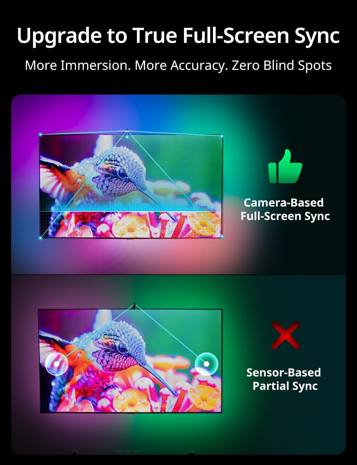 | Included Components | 12.48ft TV LED Backlights x1, HD Camera Controller x1, Power Adapter x1, Quick Start Guide x1, Wire Adhesive Clips x5, Adhesive Clips x10, Cleaning Wipe x1 |
