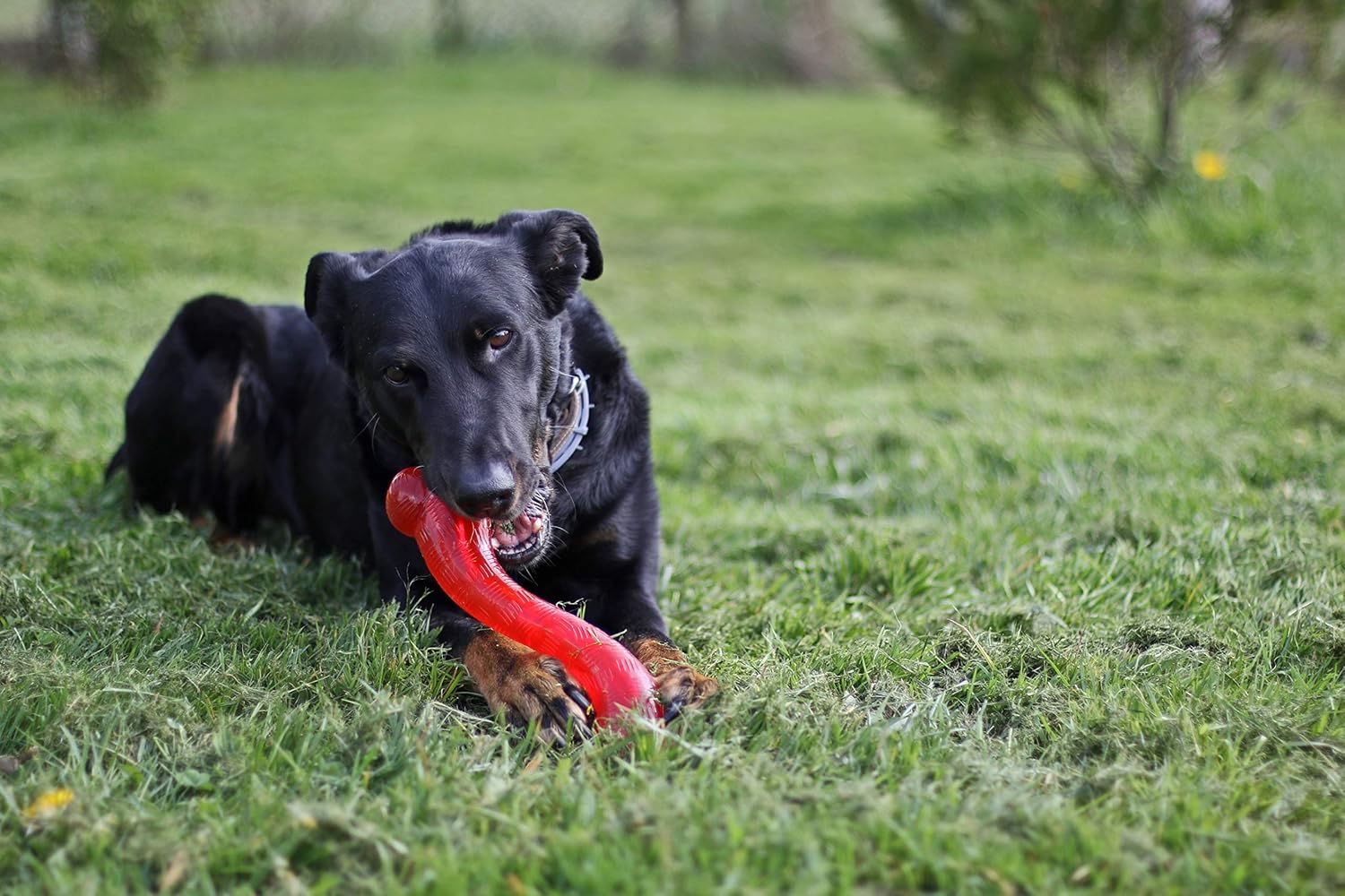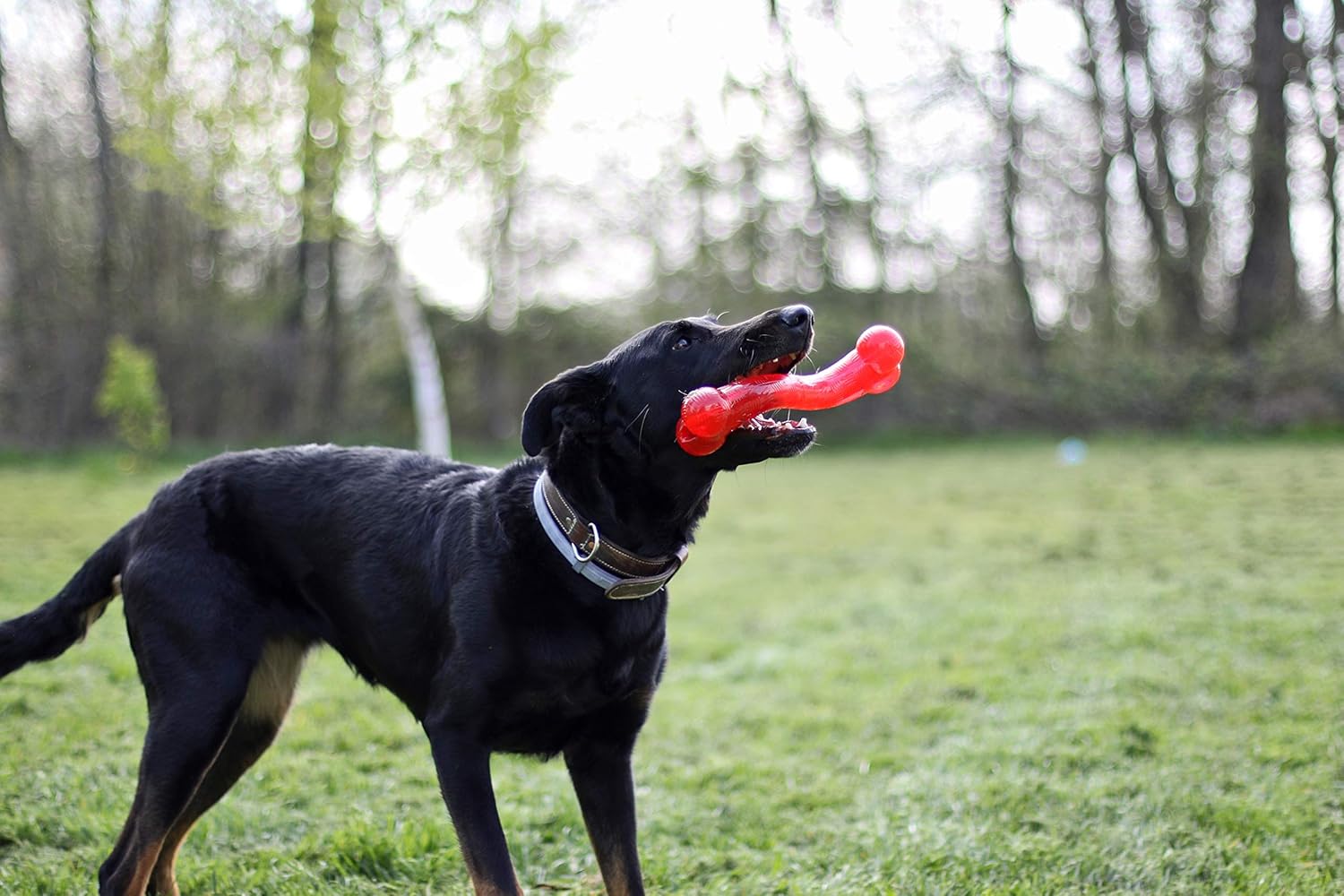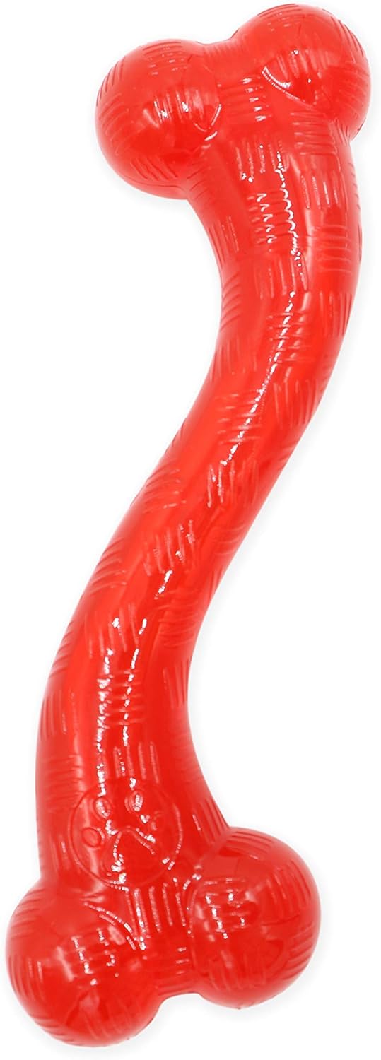 This red chew toy will be perfect for teething your four-legged friend. Its rounded bone shape will make your furry friend salive. Easy to bite, it will be perfect for your dog. Easy to store, and carry with you, your pet will be happy to play with anywhere, anytime. Your dog will be able to pull, bite and throw away this toy. It is strong, allowing you to play with your dog with confidence. It has been made for the well-being of your pet. It will be easy to grip to play with him, and it will be perfect for your dog's fangs. So you can leave your dog fat at at any time of the day to treat their teeth. Size: 30 cm