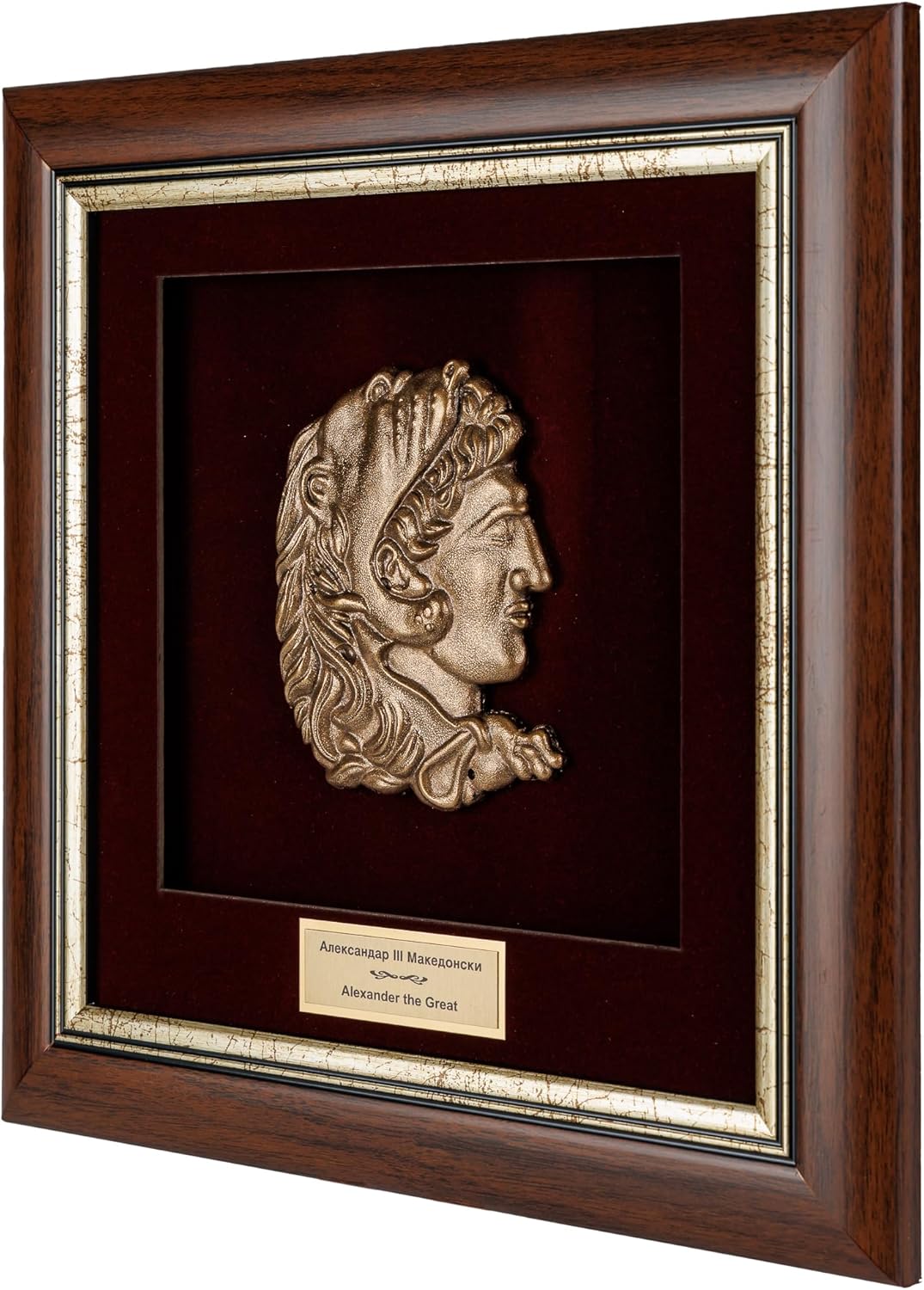 Alexander the Great was more than a conqueror. He was a visionary, a master tactician, and a symbol of strength whose influence still echoes across the world today. This museum-quality portrait captures the legendary figure of Alexander III of Macedonia draped in his iconic lion’s head cloak, a mark of both divine favor and heroic power. Modeled after ancient Macedonian coins and sculpture, this finely detailed piece honors a ruler who reshaped continents and cultures. Whether admired for its artistry or cherished for its historical importance, this framed artifact brings depth and dignity to any collection or space.We create more than replicas—we preserve stories. Our pieces are made with care, research, and respect for the cultural legacies they represent. When you choose this artifact, you’re not just buying a decorative item. You’re honoring a world-shaping legacy with a piece worthy of display.