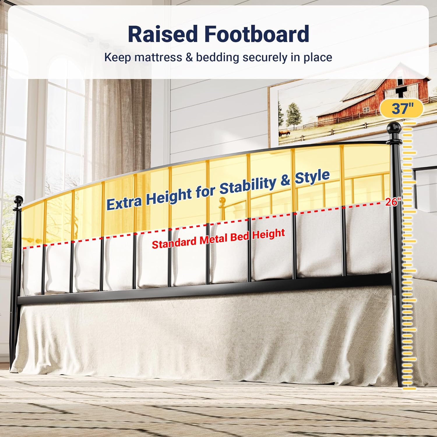 | Other Special Features of the Product | No Box Spring Needed, Raised Footboard & Headboard, Reinforce Metal, Squeak Resistant, Unique Arched Design |