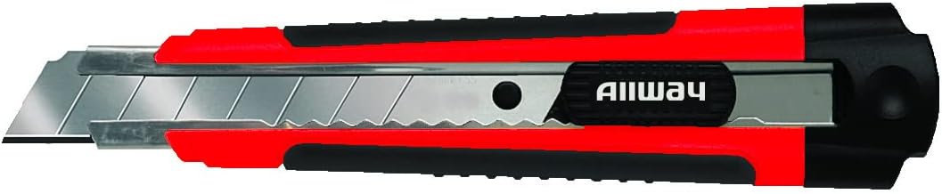 The Allway Tools 18mm sturdy snap off knife (bucket of 25) can be used for everyday cutting with excellent sharpness and long life. Developed for all-round usage such as cutting plastic and paperboard, stripping cables, and opening boxes. With the snap-off blade, you have fast access to fresh, always-sharp blades. The knife body is made from ABS plastic, so it has a high tensile strength and is very resistant to physical impacts and chemical corrosion, which allows the K7-25 to withstand heavy use and adverse environmental conditions. The 8-point replacement blades are made from high carbon steel, meaning they are extremely strong and shock resistant. Use pliers to safely snap off a fresh point. Handle with extreme care and eye protection is recommended when snapping the blade points off.