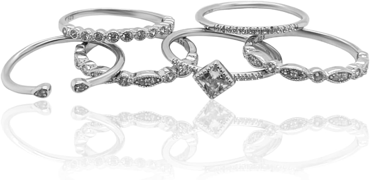 Elevate your jewelry collection with the ALLYANNA 6 Stackable Rings For Women, crafted from 925 sterling silver and adorned with sparkling cubic zirconia stones. These dainty and delicate rings are designed to be worn individually or stacked together for a chic and trendy look. Perfect for everyday wear or special occasions, these non-tarnish rings are a versatile and timeless addition to any woman's jewelry box. The sleek and minimalist design allows you to mix and match with other pieces, creating endless styling possibilities. Crafted with precision and care, these stacking rings are built to last, ensuring you can enjoy their beauty for years to come. Elevate your style and express your unique personality with the ALLYANNA 6 Stackable Rings For Women.