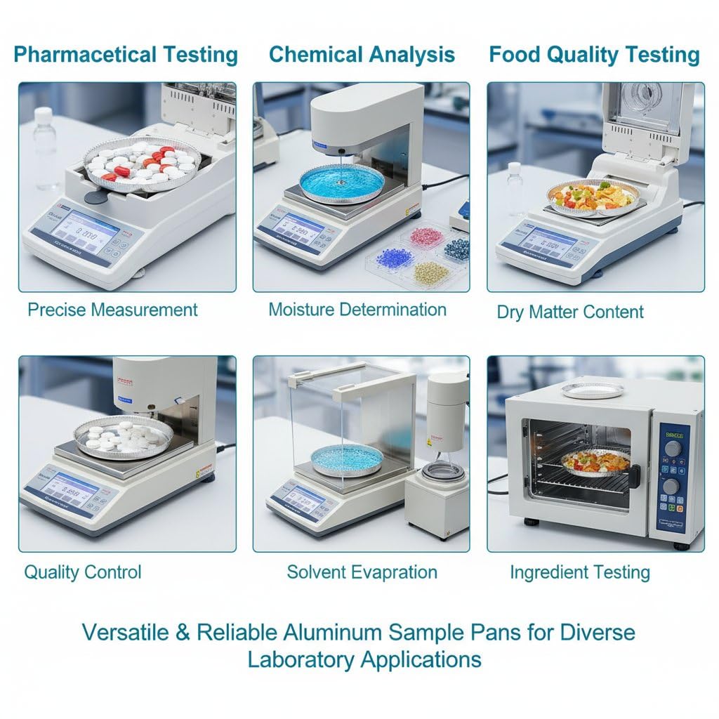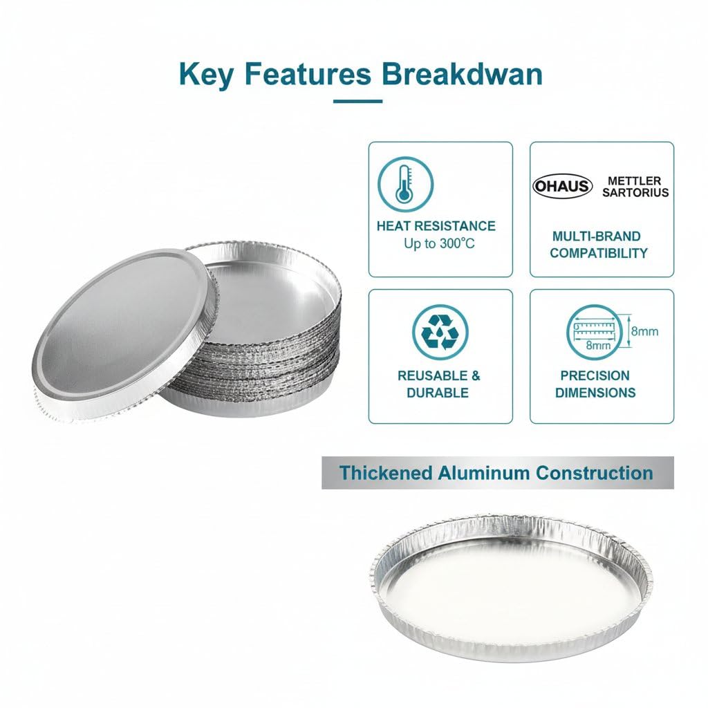 Achieve precise and reliable moisture analysis with QualiTime pack of 50 aluminum sample pans designed for laboratory moisture balances. Crafted from durable and lightweight aluminum, QualiTime reusable foil weighing dishes measure 4 inches (103mm) in diameter and 0.31 inches (8mm) in height, providing a generous 58ml capacity. Their compact size and shallow depth make them ideal for holding and evenly distributing small samples during moisture determination tests. The smooth, non-reactive surface ensures accurate weight measurements without interfering with the sample. Easily disposable or reusable for multiple tests, QuanliTime sample pans offer a cost-effective and convenient solution for moisture content analysis in various industries, including food, pharmaceuticals, and materials testing laboratories. With their uniform size and shape, QualiTime aluminum sample pans ensure consistent and reproducible results, enhancing the reliability of your moisture balance readings.