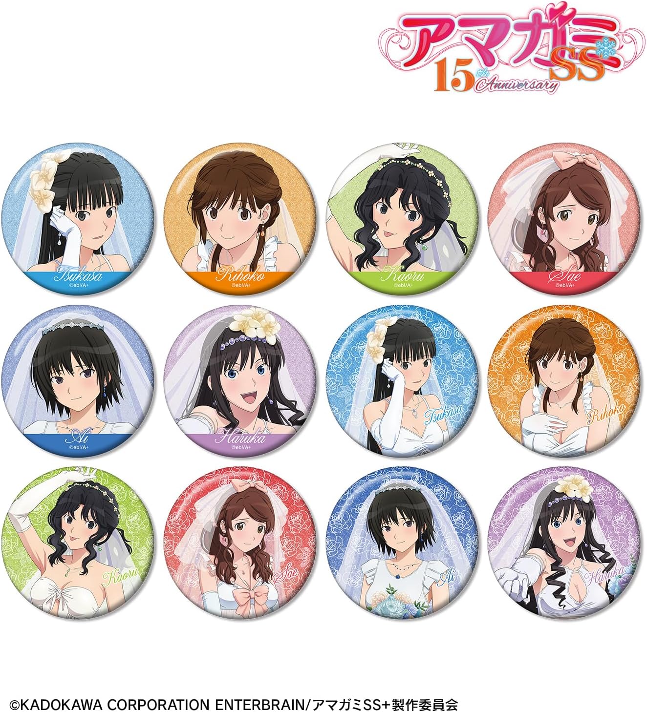 Introducing a trading glitter tin badge from Amagami SS+plus. A tin badge with a glitter finish, illustration illustrations illustrated by Haruka Morijima, Rio Sakurai, Kaji, Nakata, Aizu Nanasaki, and Haruka Morijima. Put it on your bag or small objects, decorate it side by side in your room, enjoy the daily life with the characters