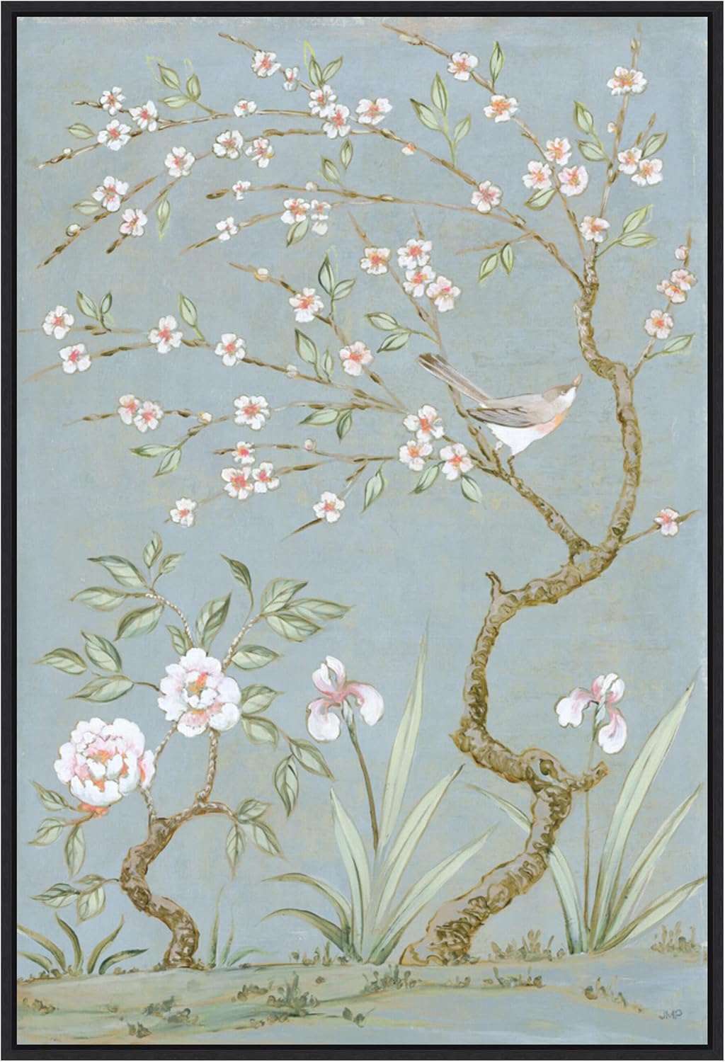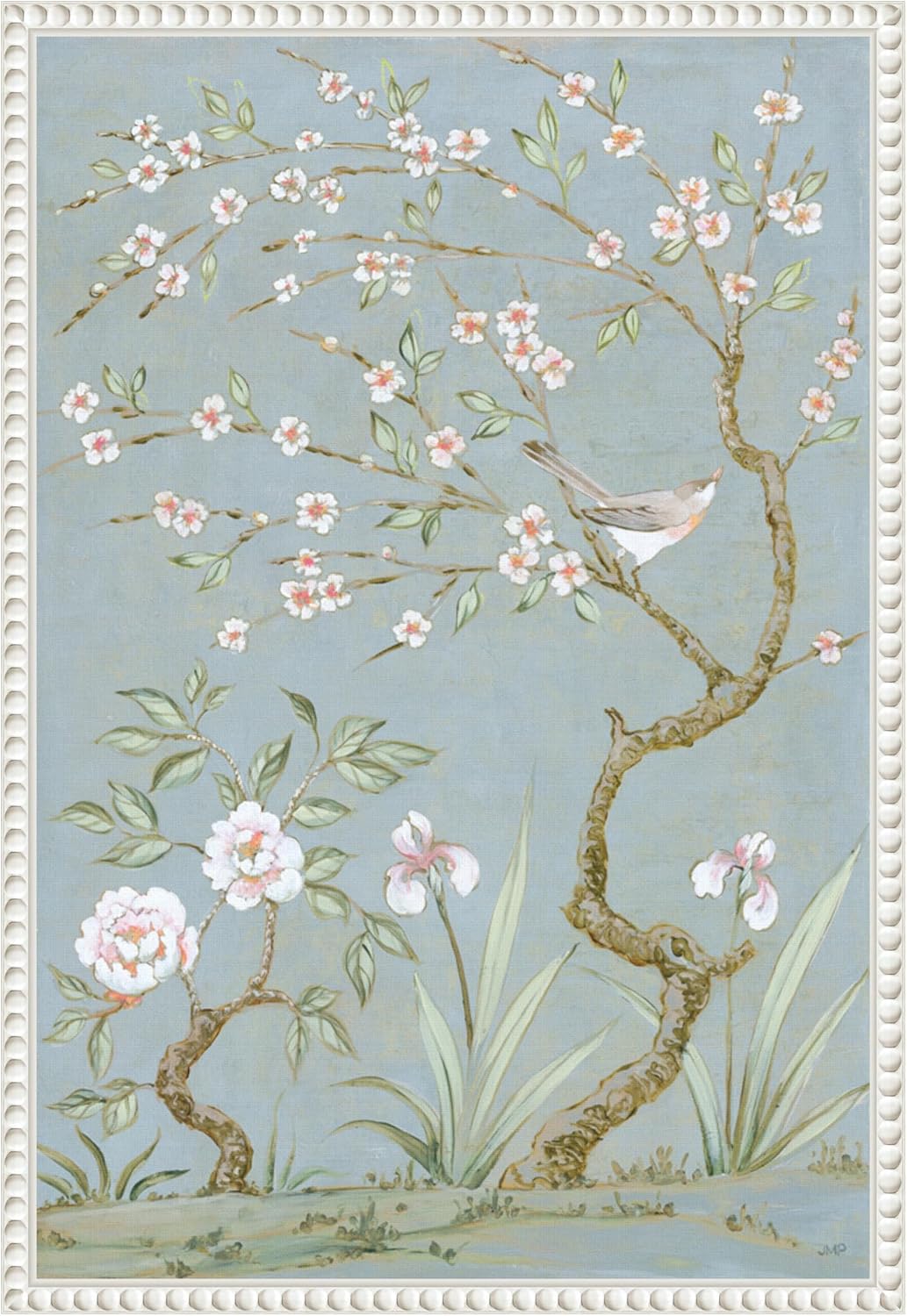 CANVAS ART DETAILS: Spring Mural I Blue by Julia Purinton. ARTIST BIO: Julia Purinton works in oils, acrylics, Venetian plaster, and glaze. Her artwork has the luminous glow and vintage romance of images by artists who influence her. Many layers of glaze create the atmospheric moods of her landscapes. DESCRIPTION: FRAME: Sylvie Beaded Bronze. OUTER SIZE: 23 in. W x 33 in. H. The Sylvie Beaded Bronze frame features a vintage float frame featuring a traditionally beaded ornate design with light bronze coloring, subtle antiquing and dramatic depth. This Amanti Art canvas art print was created by Julia Purinton and printed by Amanti Art in Waunakee WI. The canvas is stretched by hand and finished with a float frame. Individually made using traditional custom framing techniques, it has the quality you would expect from your local frame shop. Because of our attention to detail and focus on artistry, architects, interior designers, and homeowners alike choose this framed canvas artwork to create beautiful living spaces.
