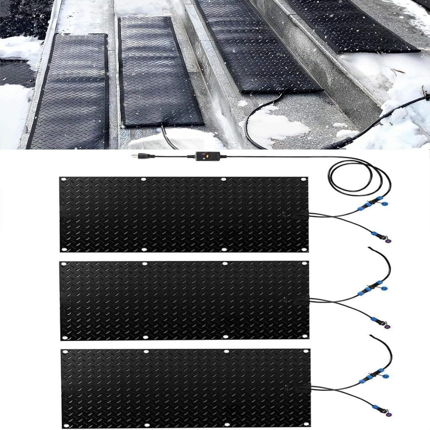 ➤ Are you still bothered by these problems in winter?➤ Snowy and icy roads? Slick road surfaces? Roofs too thick with snow? Icy steps? Snow not cleared in time? The elderly and children are prone to falls and stumbles.➤ Place our snow melting mat on the ground where there is ice and snow. When powered on, the snow melting mat will automatically melt the ice and snow, bringing safety and convenience to people's travels.➤ After one hour of power on, 5cm/2inch of snow and ice can be melted away. Keeping it powered on can keep the road surface clean and free of snow.➤ Features:☀ Surface design with anti-slip texture design, using natural rubber to enhance anti-slip and strong weather resistance.☀ Easy to install, plugged into the power supply and ready to heat up when powered on.☀ equipped with a 1.5 m/59inch power cord, plug with leakage protection.☀ easy to clean, durable and resistant to wear and tear.☀ Abandon chemical snow removal, keep environmental protection clean.☀ applied to outdoor pavements, doorways, stairs, etc.➤ Specifications:- Color: Black- Material: Natural rubber- Voltage: 110V- Power: 450-600W/square meter- Temperature: constant temperature 65℃/149℉- Melting Speed: 2inch/5 cm per hour- Power supply: Power cord length 1.6 meters/60 inch- Product Size:10x15inch(25.4x38cm)10x30inch(25.4x76.2cm)10x48inch(25.4x122cm)➤ Package Contents:1/2/3/4/5 x Snow Melting Pad1x Power Cord➤ Note: If your socket is outdoors, please cover the leakage-proof switch to prevent water and avoid tripping.