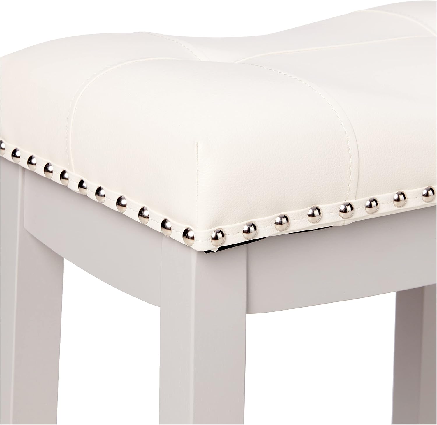 This Cambridge 24" padded stool in gray with white upholstered seat and nail head trim is perfect for any counter space or high top table. Set of 2.