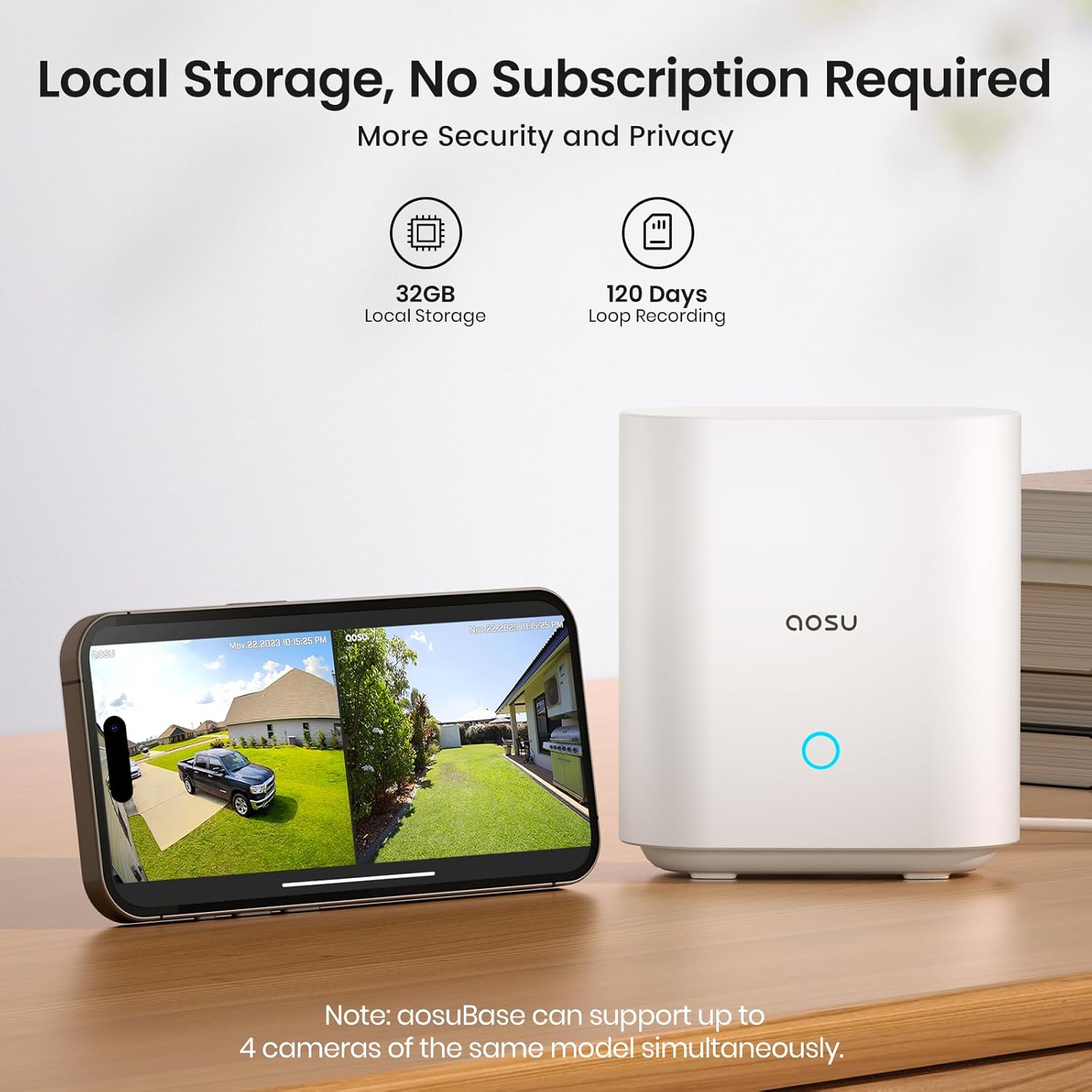 | Other Special Features of the Product | 166° Ultra-Wide Angle, Spotlight & Alarms, 2-Way Audio, Noise Reduction, One Tap Control, 32GB aosuBase, No Subscription Required, Camera-to-Camera Track & Sync, True 2K HD Resolution, Color Night Vision |
