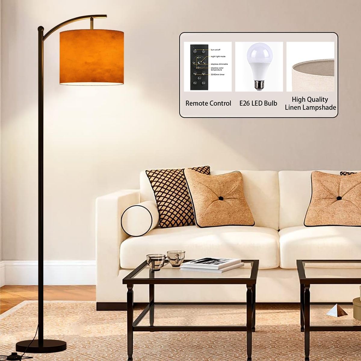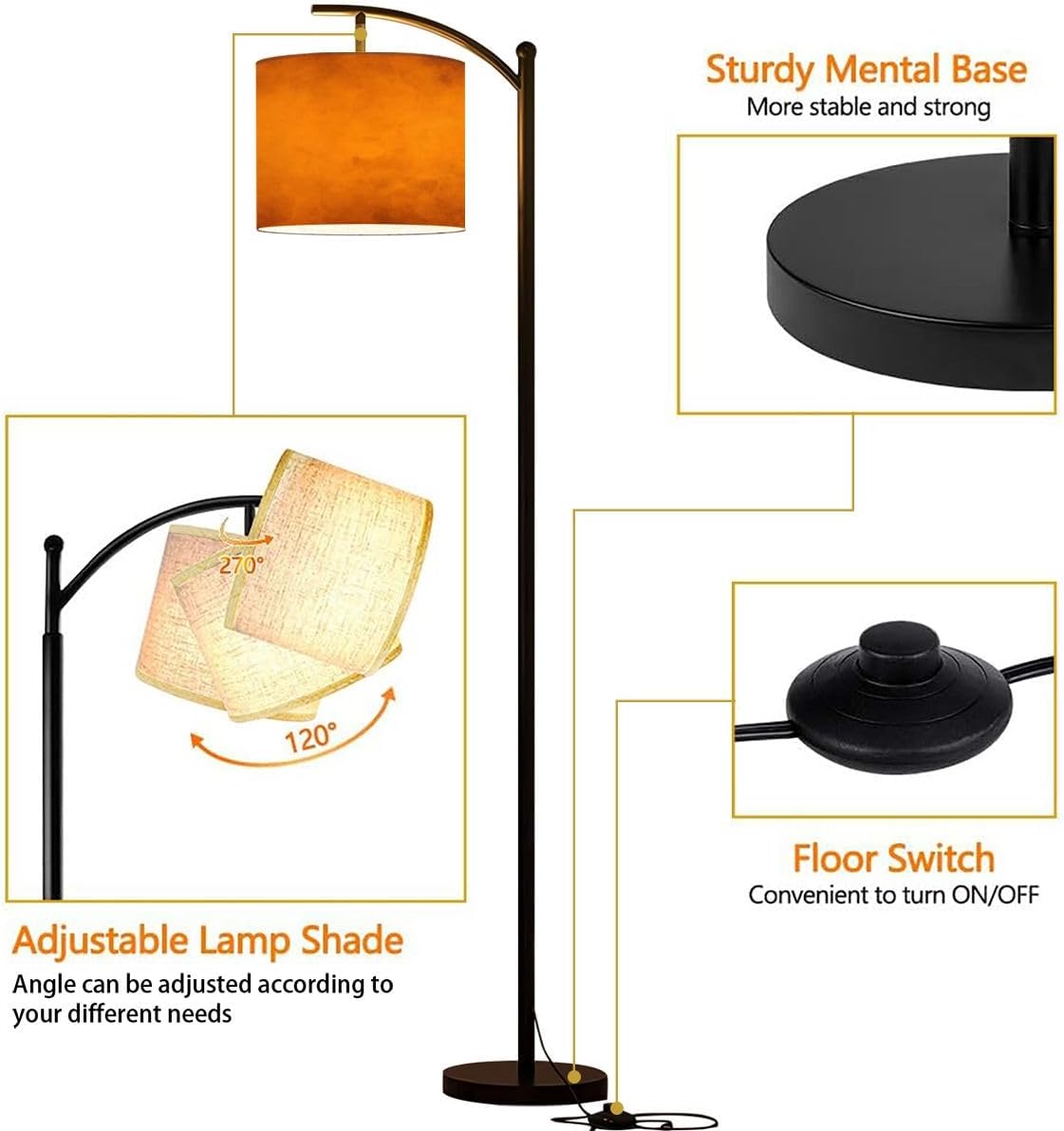 Modern Arc Floor Lamp - Make your life more convenient!We are a professional manufacturer of lamps and lanterns, aiming to present you with convenient and exquisite lamps.Advantage.1. Selected linen lampshade.2. 1 Smart USB bulb with adjustable different brightness to protect your eyes.3. Remote control, can be controlled from a distance.4. Selected materials heavy metal lamp base, strong and durable.5. Easy to assemble.6. Space-saving.7. Foot Switch.Application scenario.You can put it in your living room, bedroom, study, office, bookstore, hallway, bedside, sofa side, TV side, etc.Warming gift.It can also be given to family or friends on Christmas, Mother's Day, Thanksgiving, etc. It is a useful and thoughtful gift.Attention.-If you have any questions you can tell us at any time, and we will provide you with the most professional service.-Due to different measuring tools, there may be a slight deviation in size.
