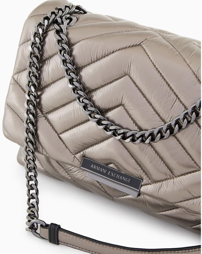 Armani Exchange Women's quilted crossbody bag, features stylish chevron detail and gold chain.