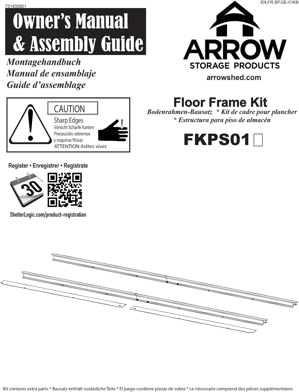 Enhance your outdoor patio storage shed with the Arrow Sheds Spacemaker Patio Shed Floor Frame Kit. Made for use with the Arrow Sheds 4' x 3' Spacemaker Patio Shed, this floor frame allows you to add reliable flooring to your storage shed. It offers superior protection from the elements for your belongings to keep them safe and clean from the ground when stored in the shed. The sturdy floor frame is strong enough for you to stand on, and it can support bulky or heavy items such as rakes, lawn mowers, blowers, and much more. Constructed from durable metal, this resilient shed base is water-resistant and withstands long-term, heavy-duty use outdoors. The floor frame is easy to install on a flat ground surface, and it's proudly made in the USA with globally sourced material. Only the floor frame is included in this kit (shed and flooring not included).
