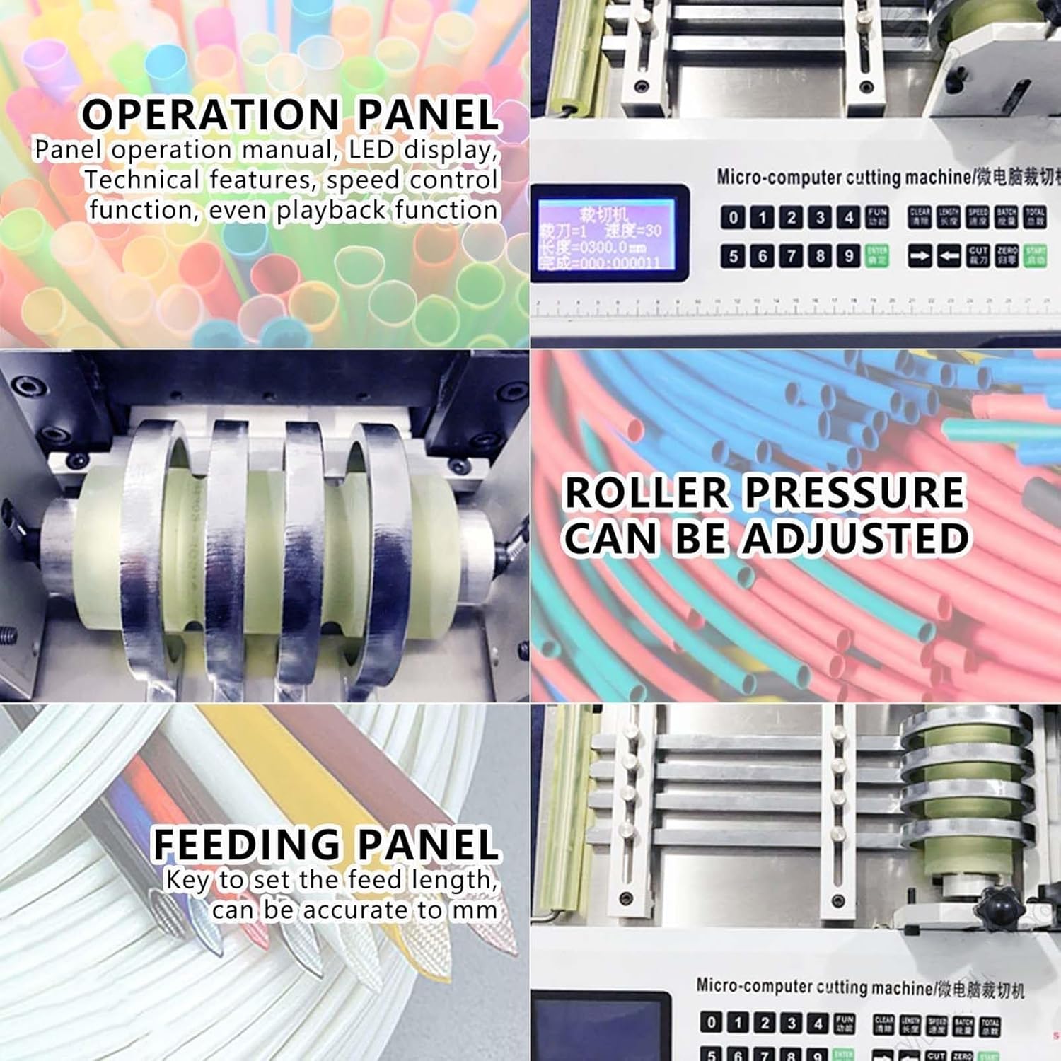 Introducing our fully automatic heat shrink tubing cutter, designed for efficiency and precision in various industries such as electronics, clothing, and automotive. This advanced machine can cut up to three tapes simultaneously, accommodating a cutting length range from 0.1 mm to 9999.9 mm and a cutting width of up to 100 mm. Powered by a robust 500 W motor, this cutter boasts a cutting speed of 34 cuts per minute for 50 mm tubing, ensuring quick and reliable operation. The intuitive CNC control panel allows users to easily set their desired length, quantity, and speed, making it an ideal solution for both small and large-scale production needs. Whether you are working on intricate electronic components or packaging clothing items, our heat shrink tubing cutter enhances productivity and accuracy, reducing waste and improving overall efficiency. Its compact design (400×350×390 mm) allows for easy integration into your workspace, while the lightweight structure (net weight of 28 kg) ensures portability. Included in the package is a complete kit of the tube cutting machine and a user manual, providing everything you need to get started right away. Before purchasing, please verify the color and size, as manual measurements may result in slight variations. Should you encounter any issues with our product, our customer support team is ready to assist you promptly. Experience the convenience and effectiveness of our heat shrink tubing cutter today!