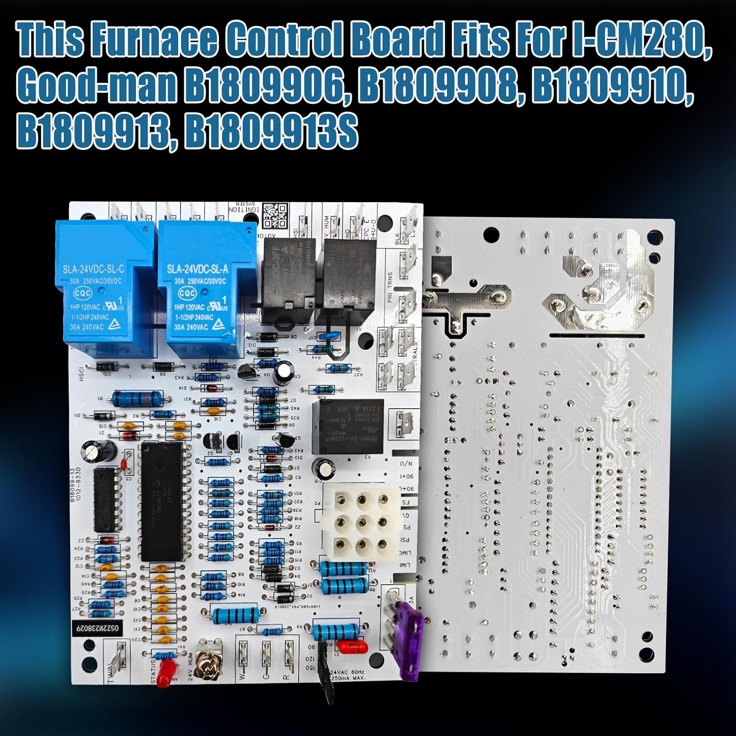 Wide compatibility: Fit for Goodman control panels B18099-06, B18099-08, B18099-10, B18099-13, B18099-13S Fit for White-Rodgers 50T35-730、50T35-743 Fit for Goodman gmp050-3, gmpn060-3, GMT070-3B, GMT070-3a, GMT070-4, gmp075-3 gmp075-4, gmpn080-4, GMT090-4, GMT090-5, GMT090-4b, gmp100-3, gmp100-4, gmp100-5 gmpn100-4, GMT115-5a, gmp125-4, gmp125-5, gmp150-5, gms80904bn, gms80704bnba gmes960803bn, gmh950703bxac Extensive Compatibility: Verified to work with over 100+ furnace models across the GDT, GMNT, GMP, GMT, GMPV, GPG, and P-series lines. From GDT045-3 to GMNT140-5B and P1256809F, this board covers the most common residential units in North America. Complete Kit Included: No need to source extra hardware. Your package comes with everything required: 1 × Control Board1 × Installation Manual4 × Induction Lines4 × Card Buckles