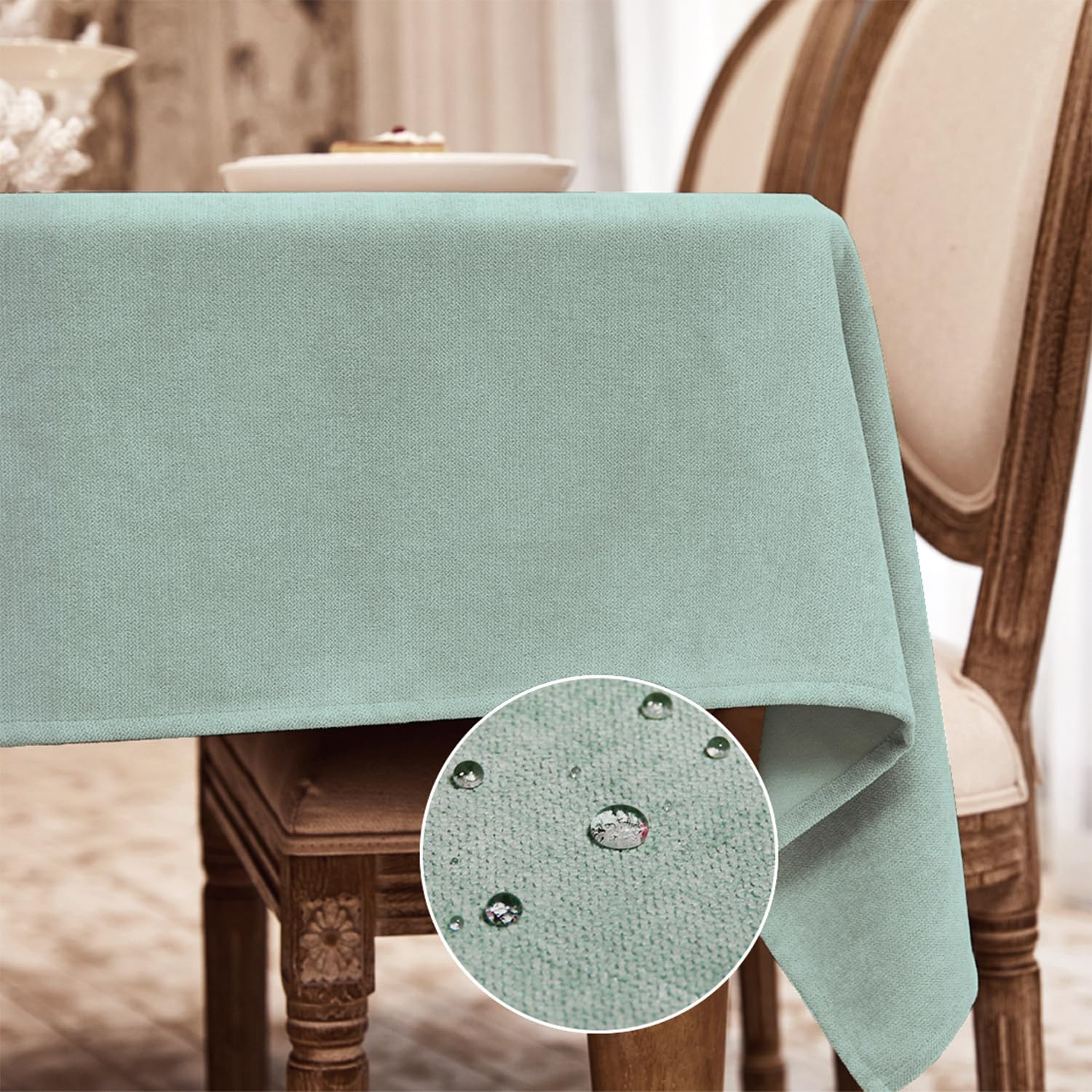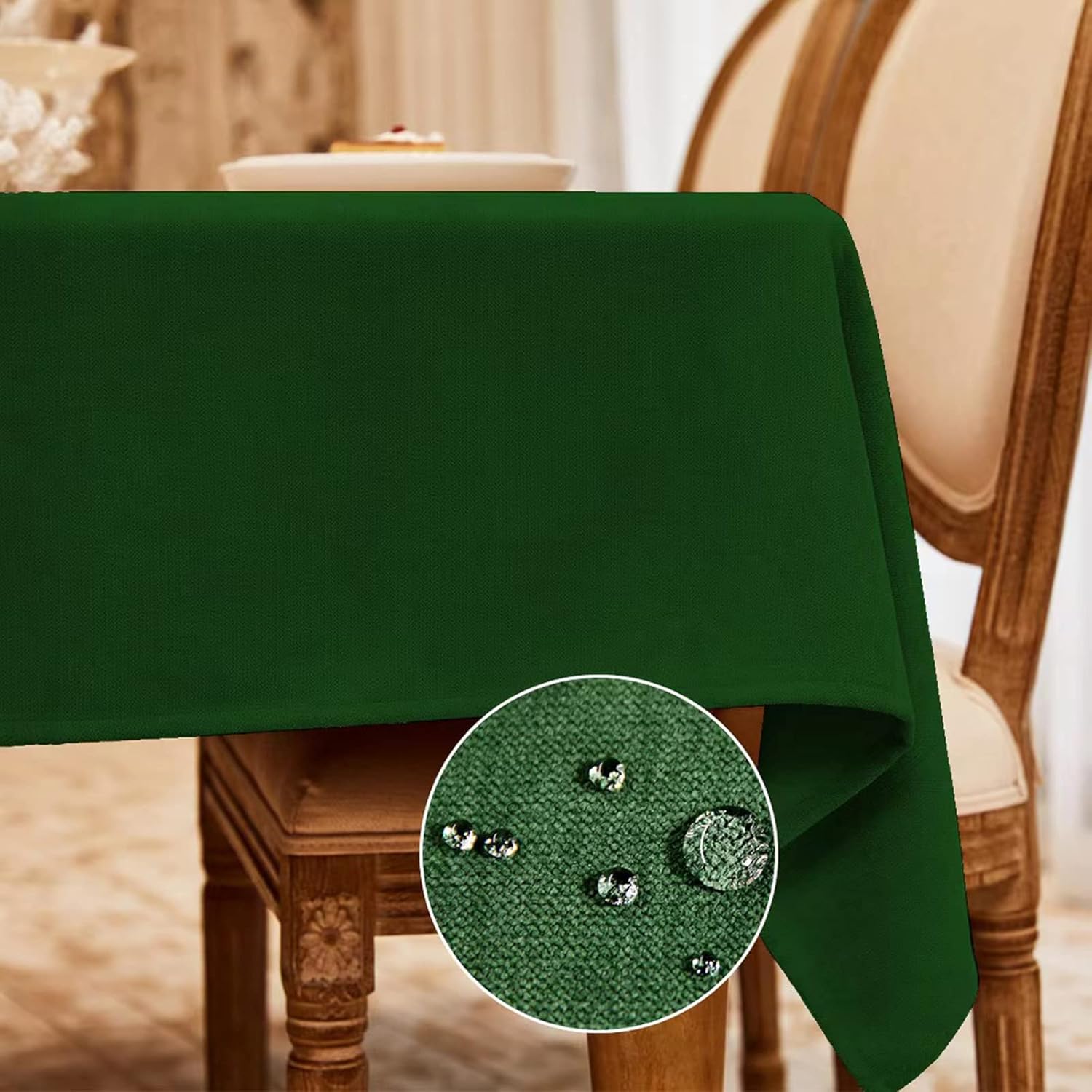 • 【Waterproof Table Cover】Latest technology such as fuzzy-feel process enhances the Lotus Effect Water Resistant which meets AATCC-22 Level 4. Spilled coffee, wine or milk beads up on surface of the tablecloths, and not easy to penetrate into the fibers. You can absorb the droplets by napkin paper. and you NO LONGER need to change and wash the table cloth every day
