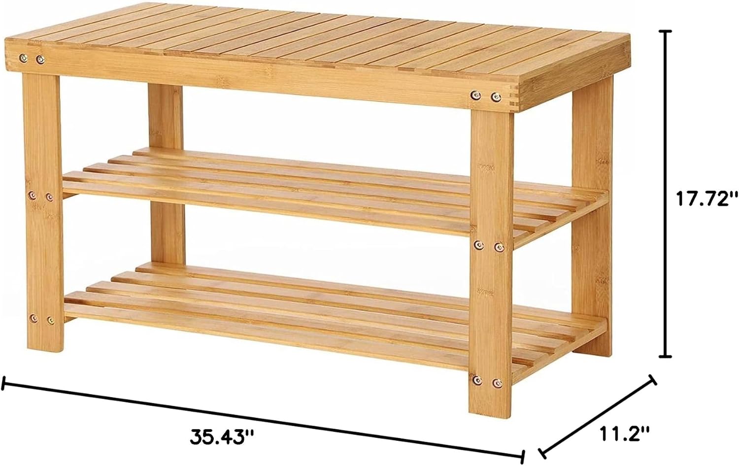 Introductions:Take a try of this 90cm Strip Pattern 3 Tiers Bamboo Stool Shoe Rack! Unique strip design makes this shoe rack stylish. As a shoe rack, it is designed into 3 tiers for storage in order. In addition to its shoe rack function, it is also a nice stool for you to conveniently wear or take off your shoes. Adopting superior bamboo material and with fine workmanship, it is solid and durable to use. It is a compact item, which won't occupy much space! Just try!Features:1. Well-designed shoe rack, acting as a stool as well2. Premium bamboo is sustainable a kids or an adult3. With 3 tiers in the same design4. Strip style makes the shoe rack stylish in look5. It helps to keep your shoes in order and make your house tidy and neatSpecifications:1. Material: Bamboo2. Color: Natural3. Dimensions: (35.43 x 11.2 x 17.72)" / (90 x 28 x 45)cm (L x W x H)4. Weight: 8.71 lbs / 3.95 kg5. Weight Capacity: 551 lbs / 250 kg6. Space Between Tier: 6.1" / 15.5cm7. Space Between Bottom Tier and Floor: 3.35" / 8.5cm8. Assembly Required: YesPackage Includes:1 x Shoe Rack Bench1 x Accessoried Pack1 x ManualNote:1.Please install goods with the instruction manual.2.It is recommended that the installation should not be too tight to adjust easily. After the structure is installed, firm the interface for more stability.