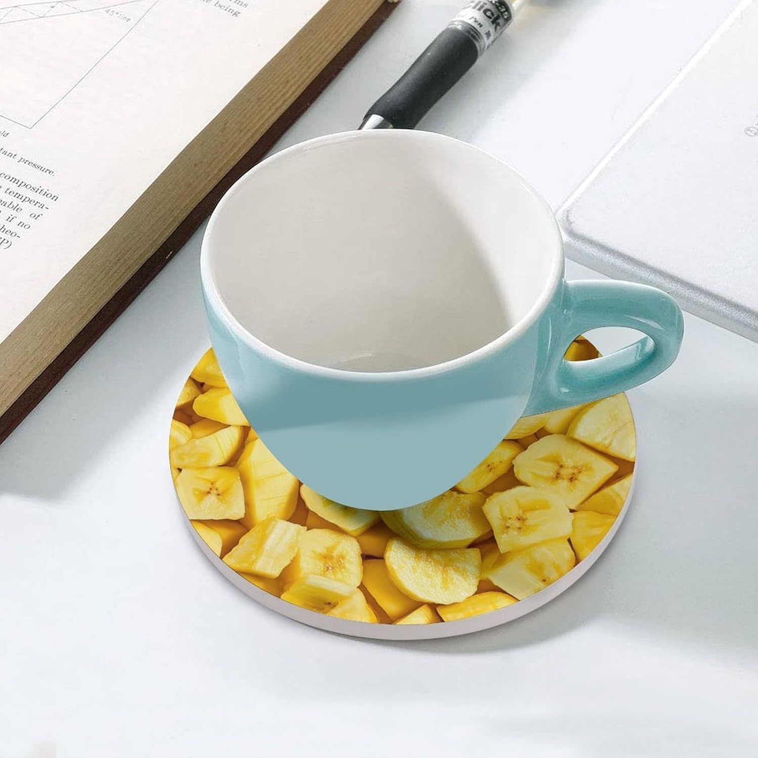 coasters,coasters set of 4,coasters set of 6,cute coasters with Funny Pattern Printed Ceramic Coasters with Cork Base Cup Holder Absorbent for Drinks Coasters Round Tabletop Protection Mat Decorative Cute Coffee Cup Beverage Coasters